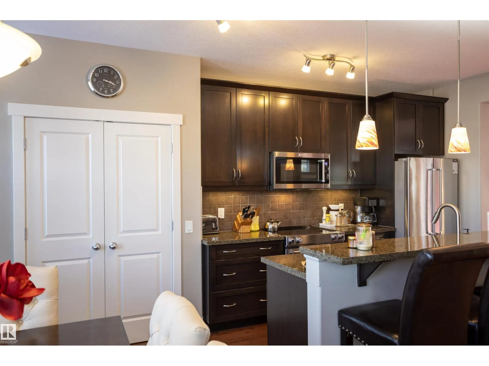 Welcome to Griesbach to find this stunning 2 bed end unit townhouse condo. A double veranda leads to the main floor with high ceilings, hardwood floors, 2pc guest bath and windows on 3 sides that flood the home with natural light.The kitchen boasts granite countertops, a large island, updated appliances and pantry.The dining room provides space for entertaining. The living