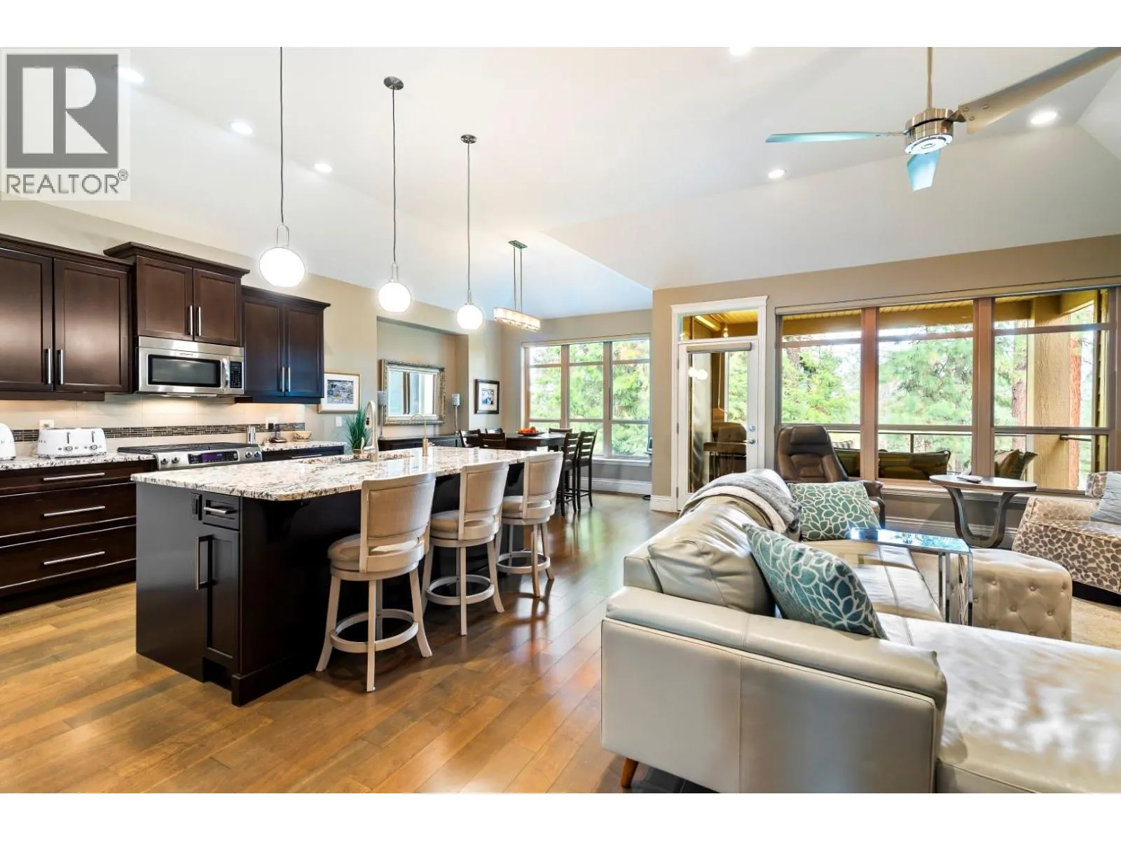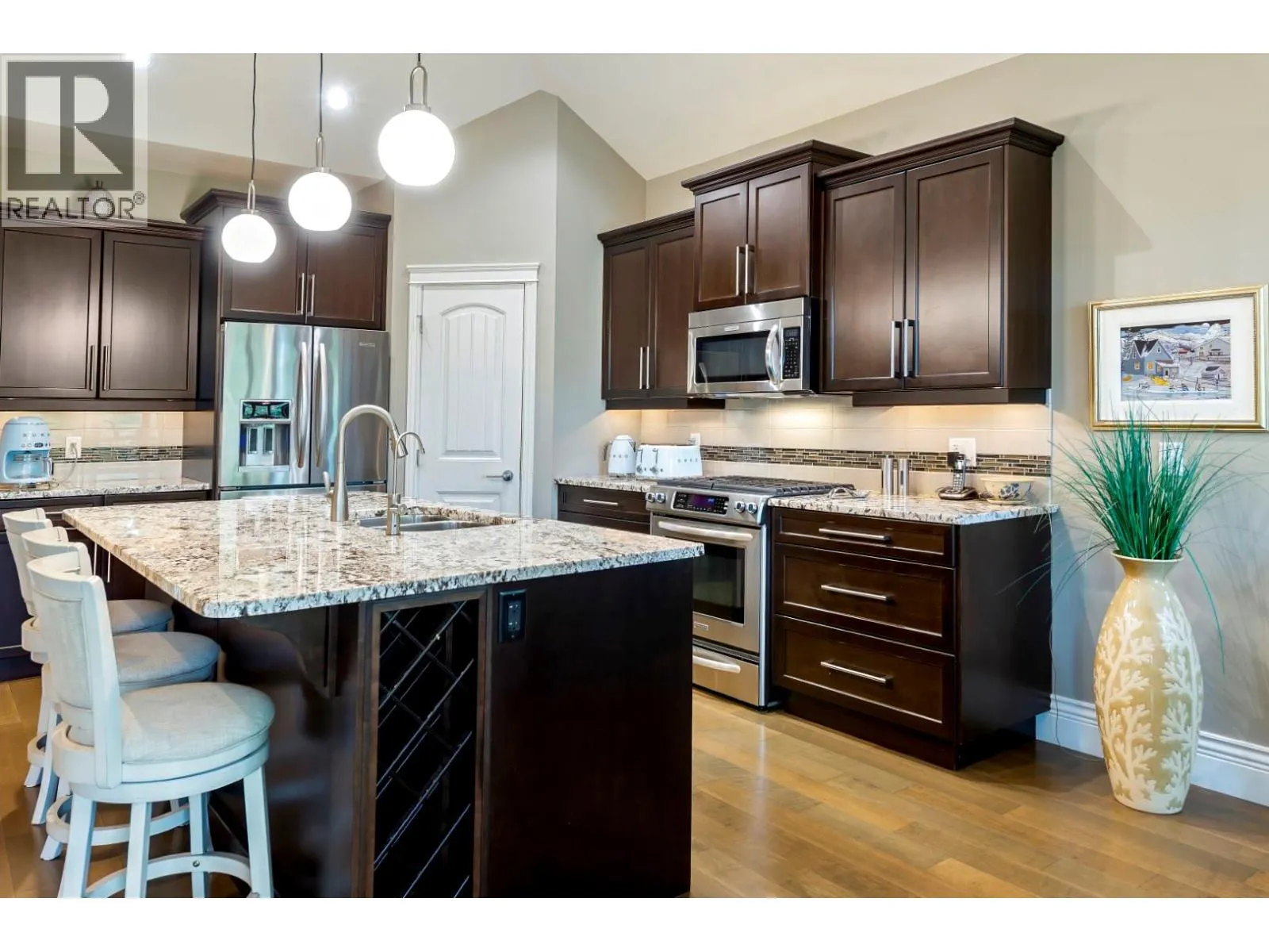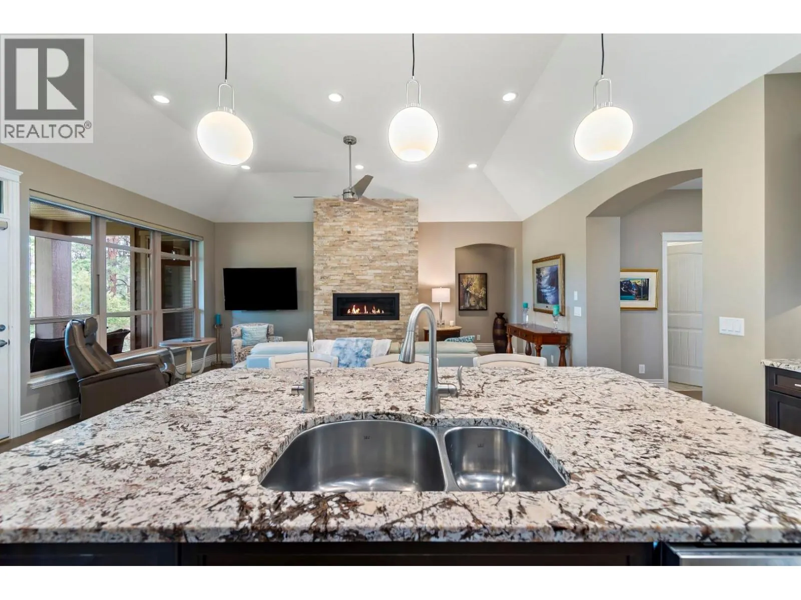 Welcome to this gorgeous custom-built home positioned on the 15th hole in the prestigious Gallaghers Canyon community. Set in a peaceful and private retreat-like setting, this beautifully appointed home features an entertainer’s kitchen with rich maple cabinetry, KitchenAid Architect Series appliances, a walk-in pantry, and a large sit-up granite island. The open-concept design is enhanced by soaring 11-foot ceilings on