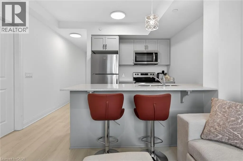 PRIME LOCATION! Welcome to PEAK CONDOS within the upper Stoney Creek across from Eramosa Karst Conservation Area, a stunning 5 Storey building that has an attractive exterior which combines stone with timeless glass & wood. Bright, sun-filled, thoughtfully designed 1 Bedroom features 9-foot ceilings and stylish upgrades throughout. Enjoy quartz countertops, an undermount sink, sleek vinyl plank flooring, pot lights