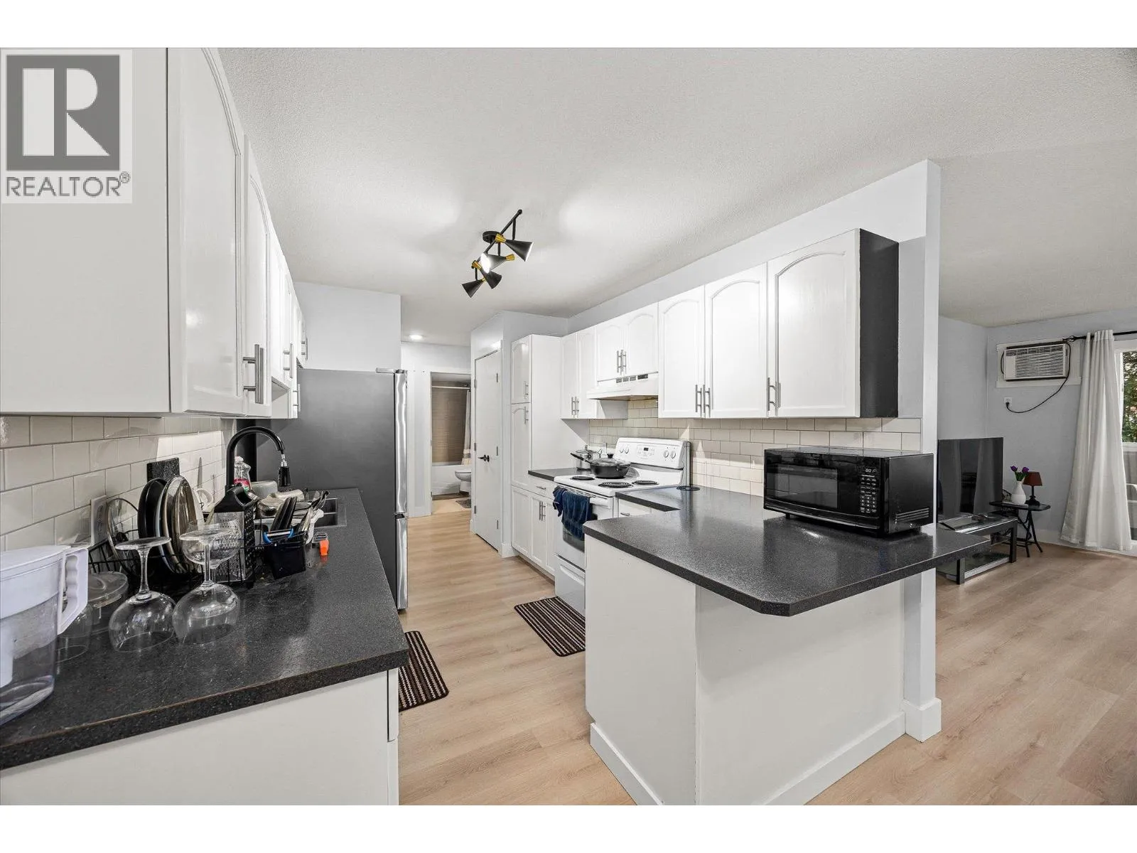 Welcome to the heart of Pandosy featuring this two bedroom two bathroom bright and beautiful apartment located on the main floor of Creekside Villas. Throughout this well laid out unit you will find a bright kitchen with Hi-end updates featuring brand new walk-in spa shower, new laminate flooring, new light fixtures, newly installed triple pane windows and sliding glass patio