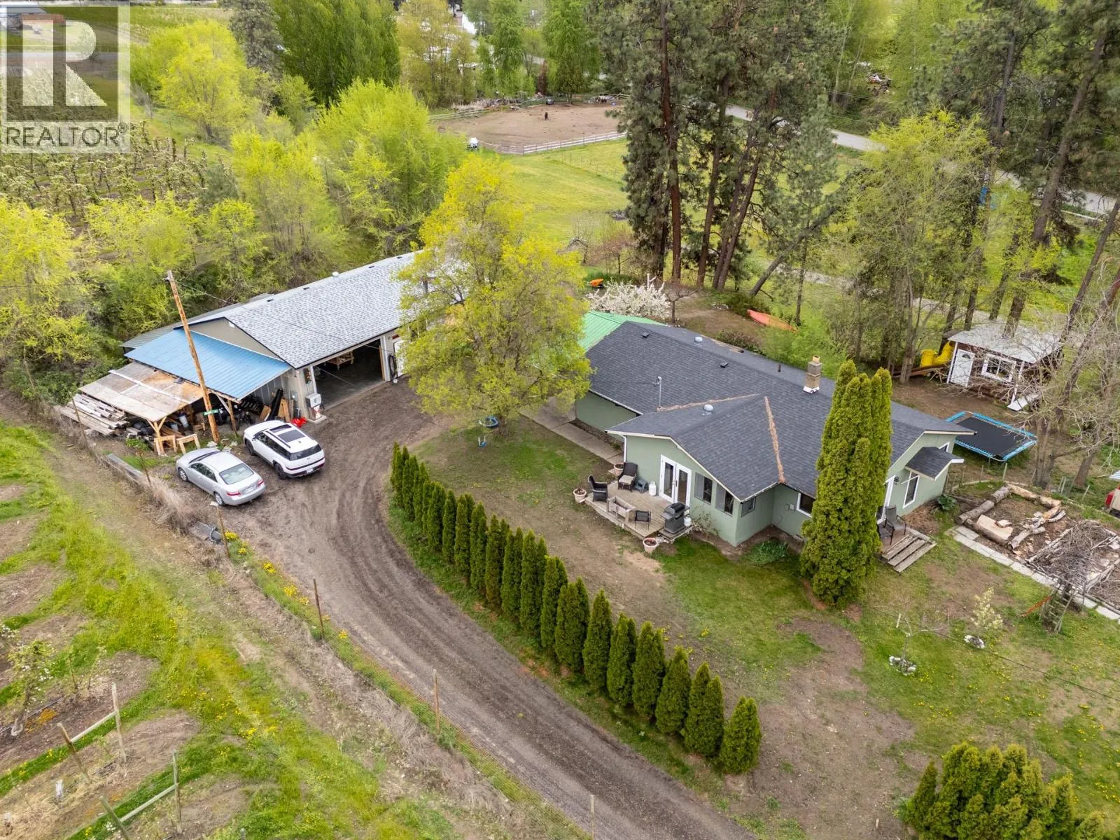 AMAZING HORSE PROPERTY! A rare opportunity to own a complete lifestyle property in Southeast Kelowna, featuring two separate homes, a large detached shop & over 4 acres of privacy and potential. Set in a peaceful, natural setting with mature trees and views over the pasture, this unique property offers incredible flexibility for multigenerational living, rental income, or home-based business use.