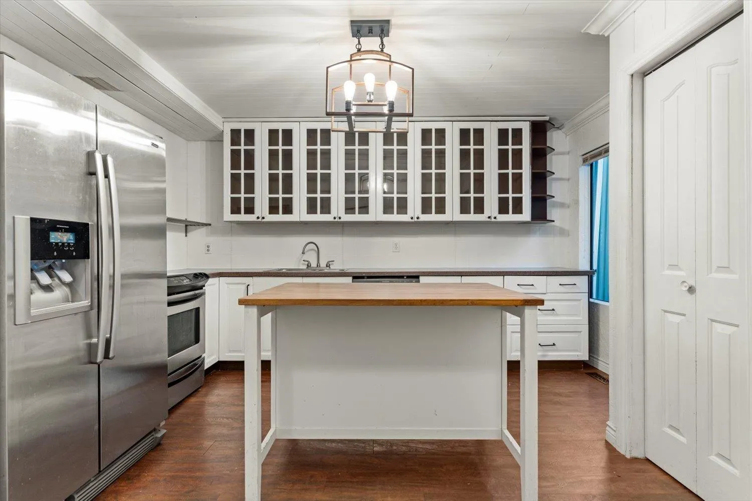 Charming half duplex in a fantastic location! This 4-bedroom, 2-bath home features a spacious kitchen with stainless steel appliances, a butcher block island, and a pantry. Enjoy the bright living room and inviting front sunroom-perfect for an office or home gym. Elegant wood-framed glass doors fill the home with natural light, complemented by rustic barn-board accents. Step outside to a