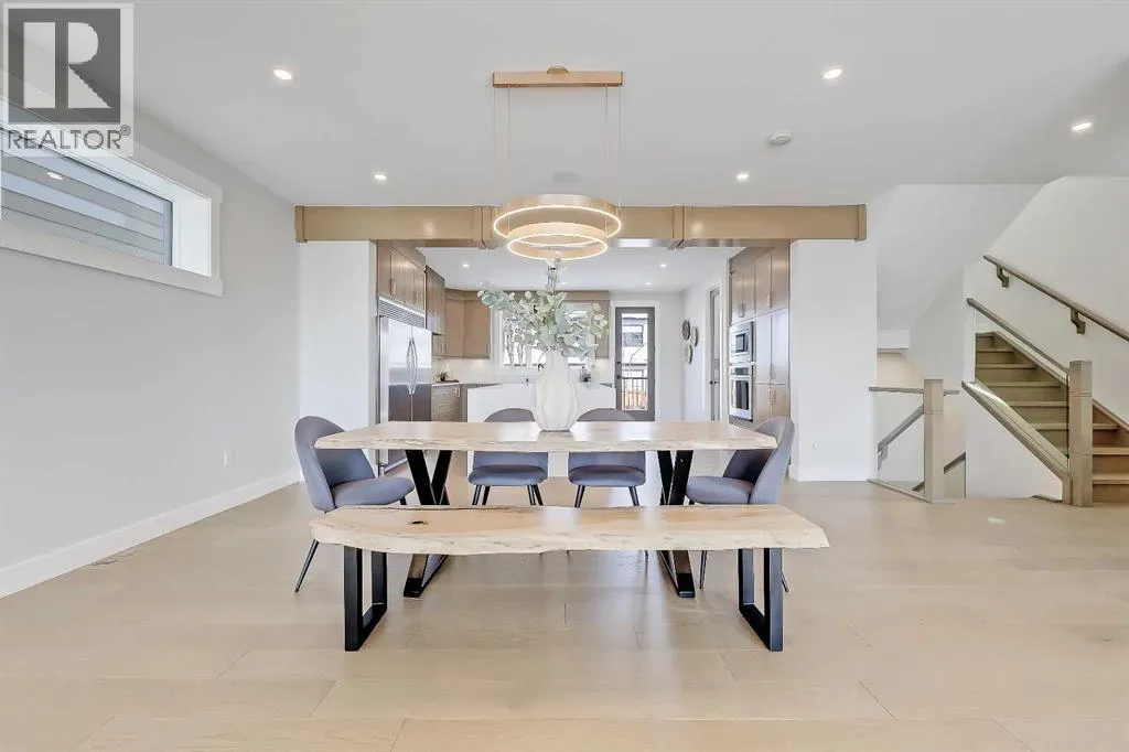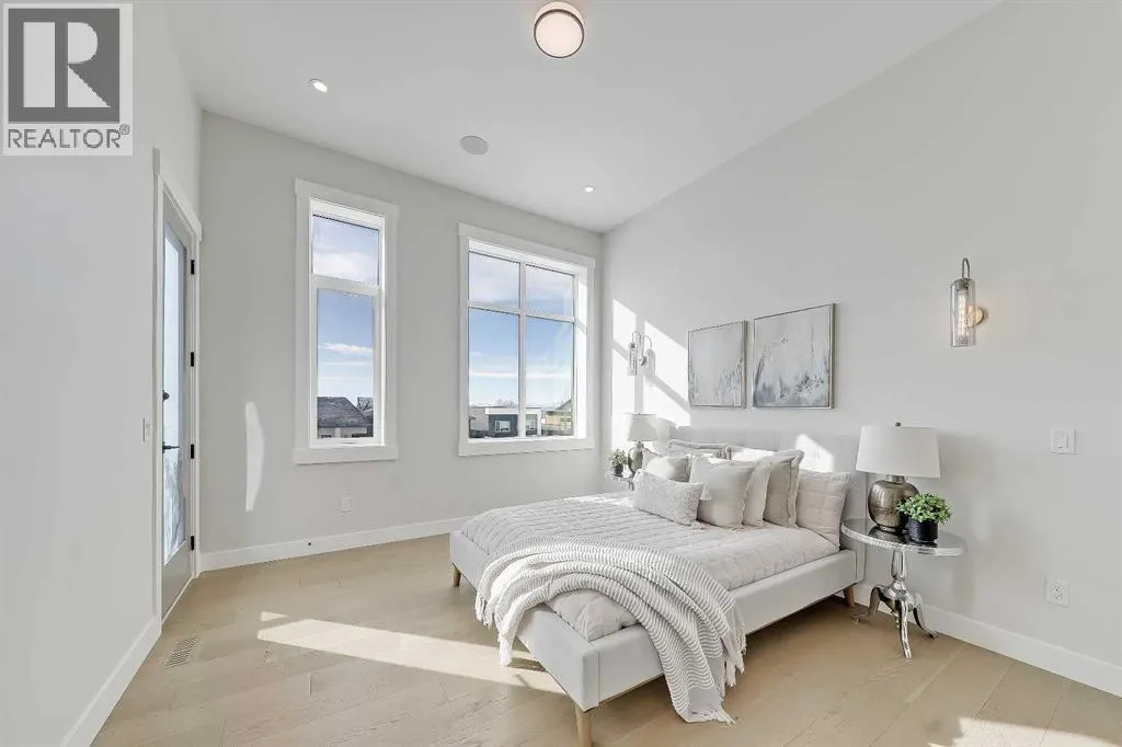 black aluminum-clad Low-E windows. Inside, wide-plank hardwood, custom millwork, and expansive windows create an atmosphere of quiet luxury. Light pours in from every direction, bringing warmth to the oak accents and a sense of calm to the home’s airy, open layout.Built as a true ALL-ELECTRIC RESIDENCE WITH NO GAS LINE TO THE PROPERTY, this home is designed for long-term sustainability and year-round comfort. 28 fully registered SOLAR PANELS produce more energy annually than the home consumes, per the EnerGuide report. A MITSUBISHI ELECTRIC HEAT PUMP provides efficient heating & cooling, supported by an upgraded Lifebreath HRV system for continuous fresh air circulation. Advanced insulation, airtight construction, TRIPLE PANE LUX windows, smart LED lighting, and high-efficiency appliances work together to create a whisper-quiet interior that stays warm in winter, cool in summer, and operates at roughly half the utility cost of a comparable home!The main floor is designed for connection & function. The showpiece kitchen features a waterfall quartz island, warm oak cabinetry, induction cooktop, wall oven, French door fridge, wine fridge, and POT FILLER. A hidden PREP KITCHEN keeps the main space streamlined and clutter-free. The dining area flows seamlessly into the bright living room with a modern fireplace & access to the South-facing balcony. A designer powder room completes the level.Upstairs, a central bonus room anchors the bedrooms. The primary retreat offers an 11-ft ceiling, private balcony with DOWNTOWN VIEWS, boutique-style walk-in closet, and a spa-inspired ensuite with h eated floors, dual vanities, freestanding soaker tub, and STEAM shower. Two additional bedrooms include walk-in closets and private 4-pc ensuites. A fully appointed laundry room adds practical convenience.The lower level expands the home with 9-ft ceilings and large windows that keep the space bright and welcoming. A spacious rec room with custom built-ins & wet bar creates the perfect setting for entertaining. A full bedroom and bathroom provide flexibility for guests, older children, or multigenerational living. Direct access to the FINISHED attached garage with EPOXY FLOORING & EV CHARGER enhances daily ease.Located across from a private pocket park with a picnic area and basketball court, and close to pathways, playgrounds, green space, and community gardens. Quick access to Crowchild Trail, Stoney Trail, the Rocky Ridge YMCA, and Tuscany LRT station makes commuting simple.This is modern luxury designed for the future: energy independent, architecturally refined, and built to stand apart. (id:62650)