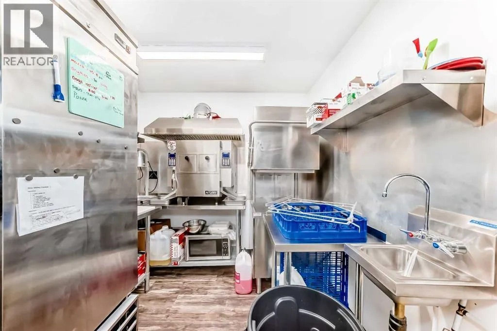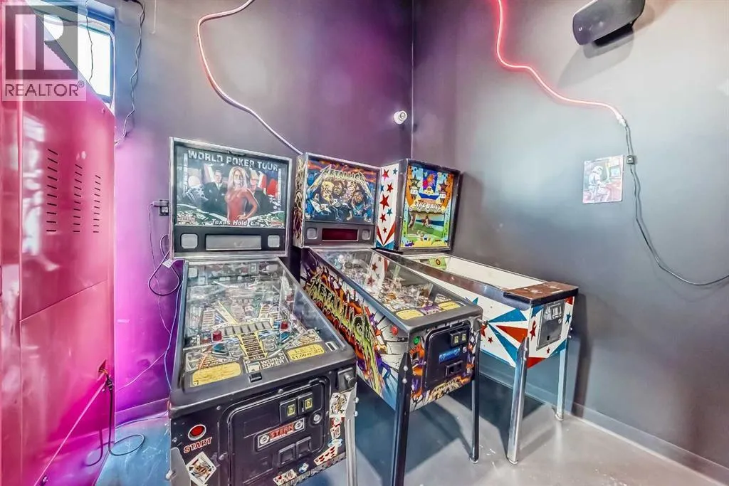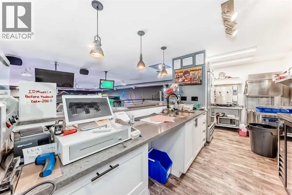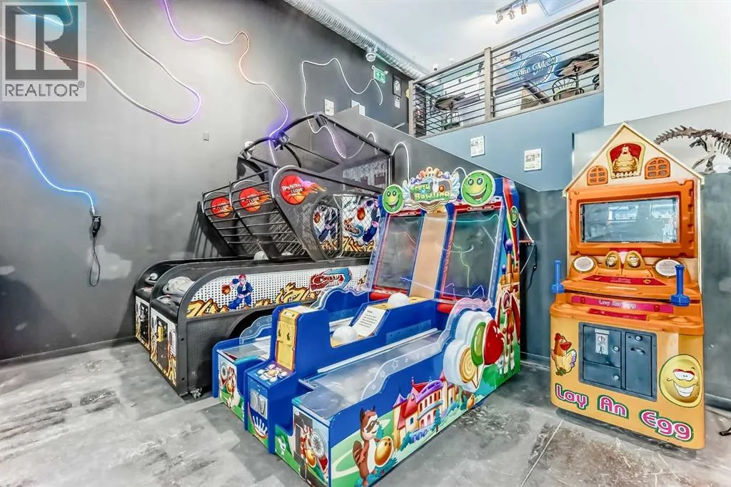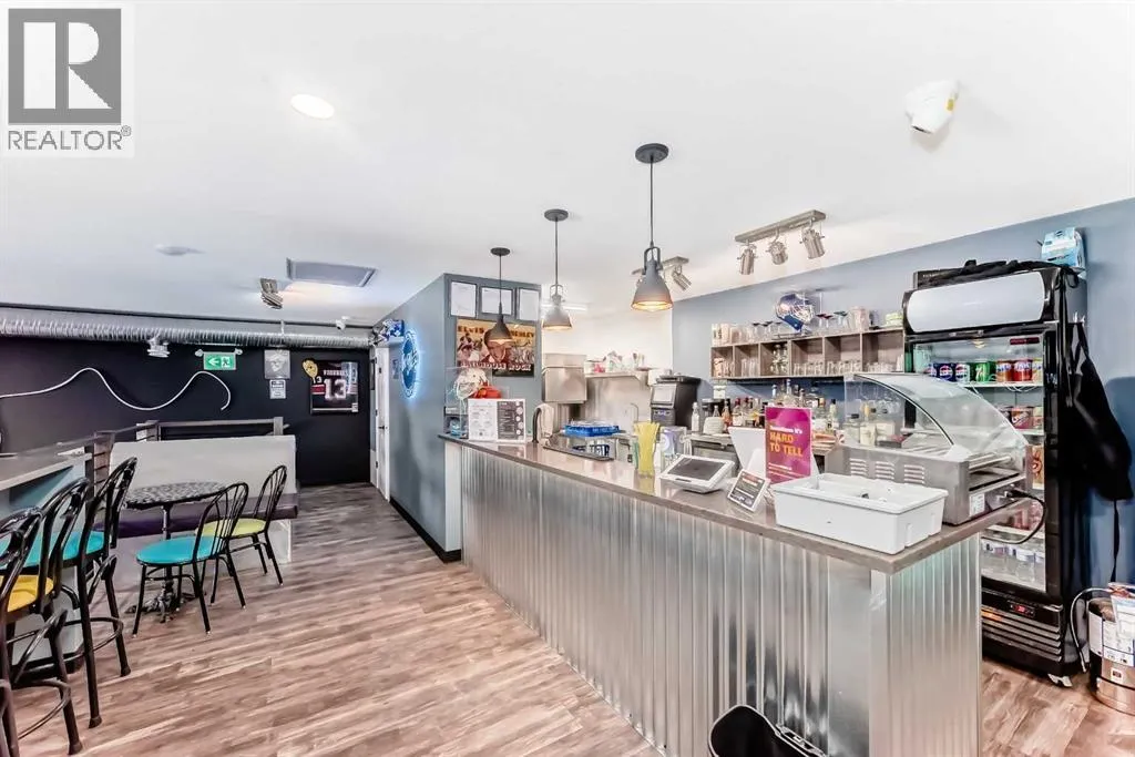 Prime commercial location just off Highway #1. This 2,000 sq ft main floor plus 600 sq ft mezzanine commercial condo is currently set up as an arcade entertainment venue with licensed alcohol service and concession/bar area.The space includes two washrooms, air conditioning, on-demand hot water, extensive electrical outlets, high-end stereo system, security system with 8 cameras, and double rear doors