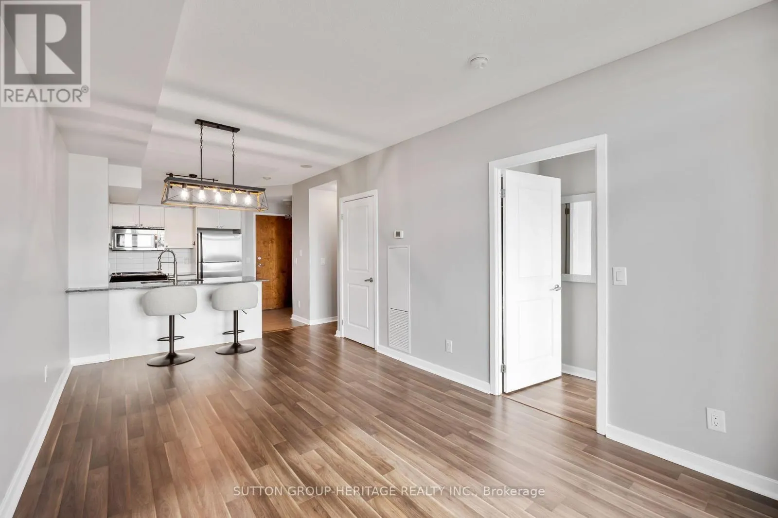 This 1+1 bedroom, south-facing condo in Pickering’s San Francisco by the Bay offers stunning panoramic lake views and sunsets from the kitchen, living room and master bedroom. Featuring upgraded laminate flooring throughout, the unit includes a modern kitchen with granite countertops, stainless steel appliances and a breakfast bar. The master suite boasts a large closet and a private 4 piece