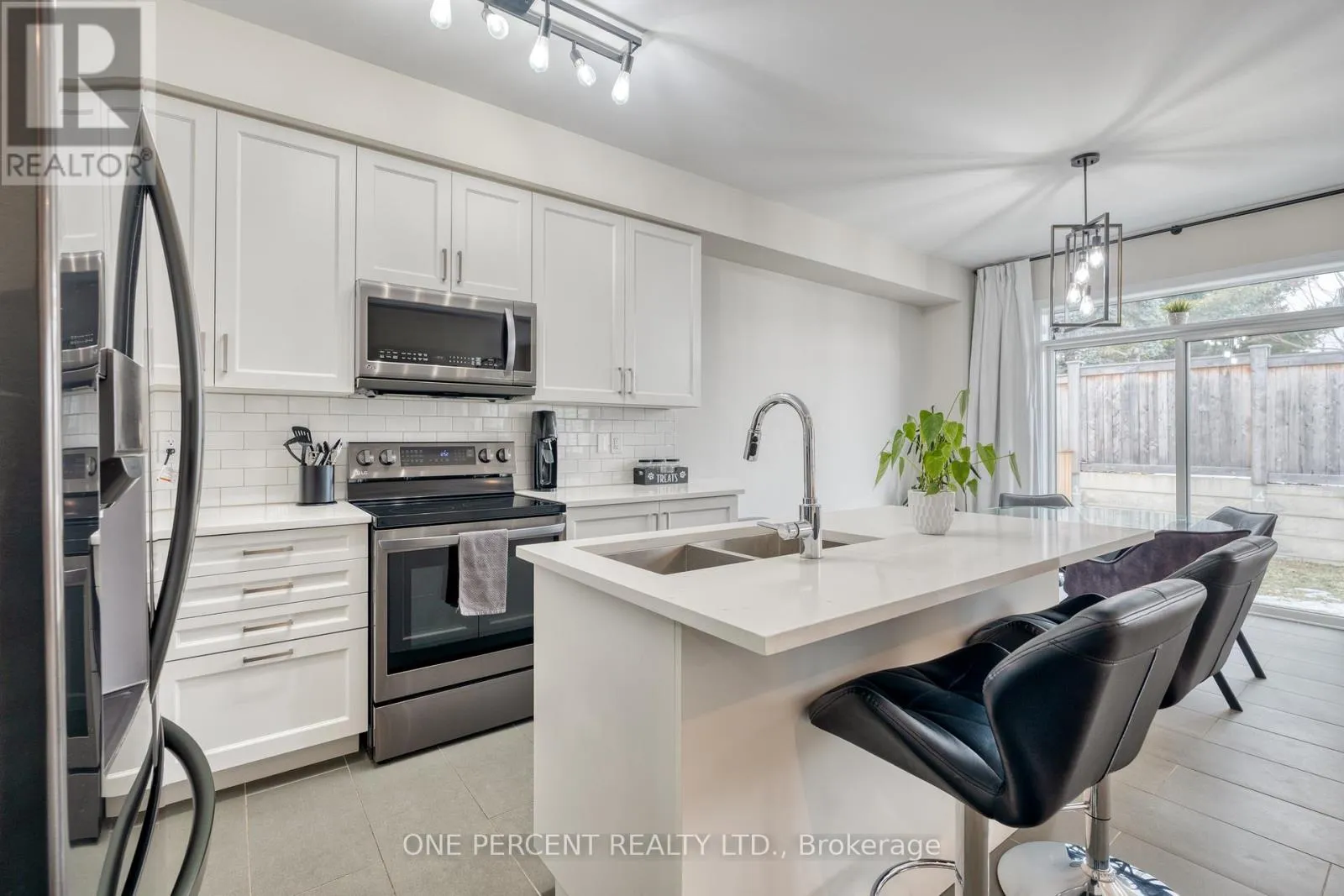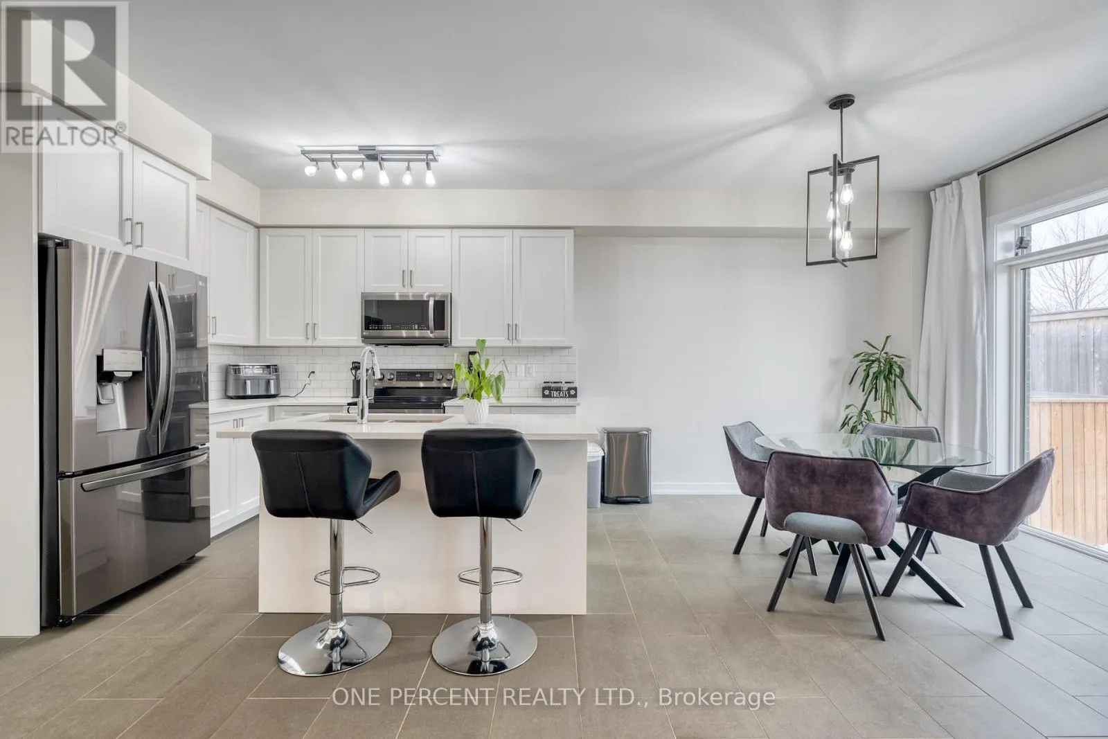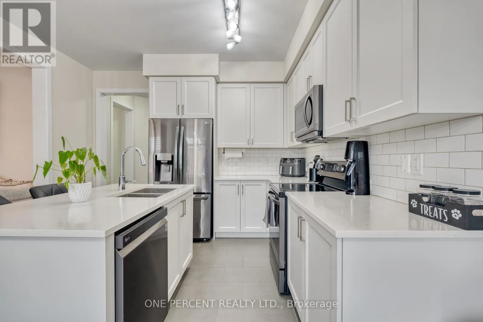 Situated in a quiet neighborhood near the Grand River, this 1,893 square foot home is less than two years old and has been well-maintained. The interior features nine-foot ceilings and hardwood flooring across the entire main level, complemented by a matching oak staircase. The kitchen is finished with quartz countertops, dark stainless steel appliances, and shaker cabinetry. In the adjacent
