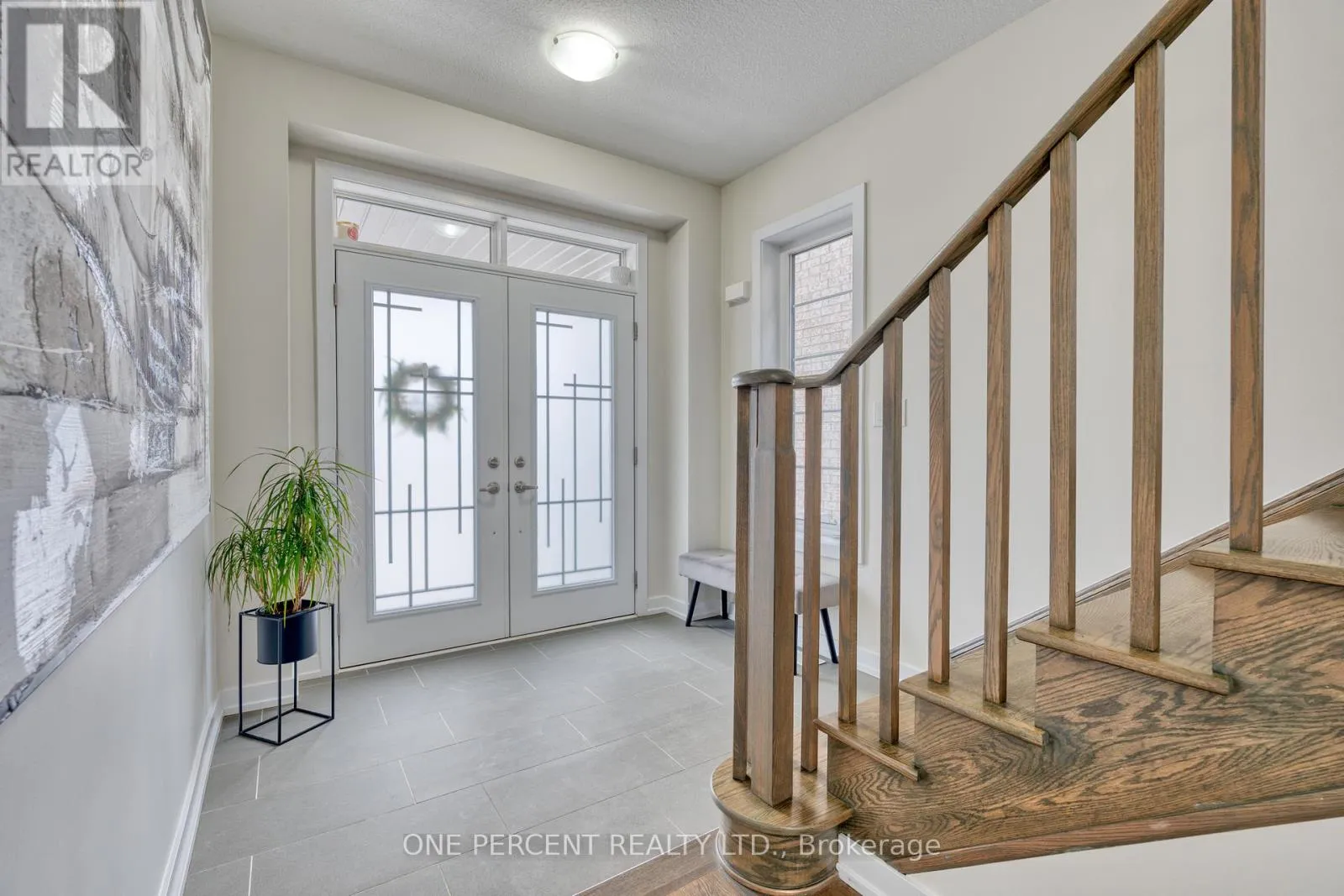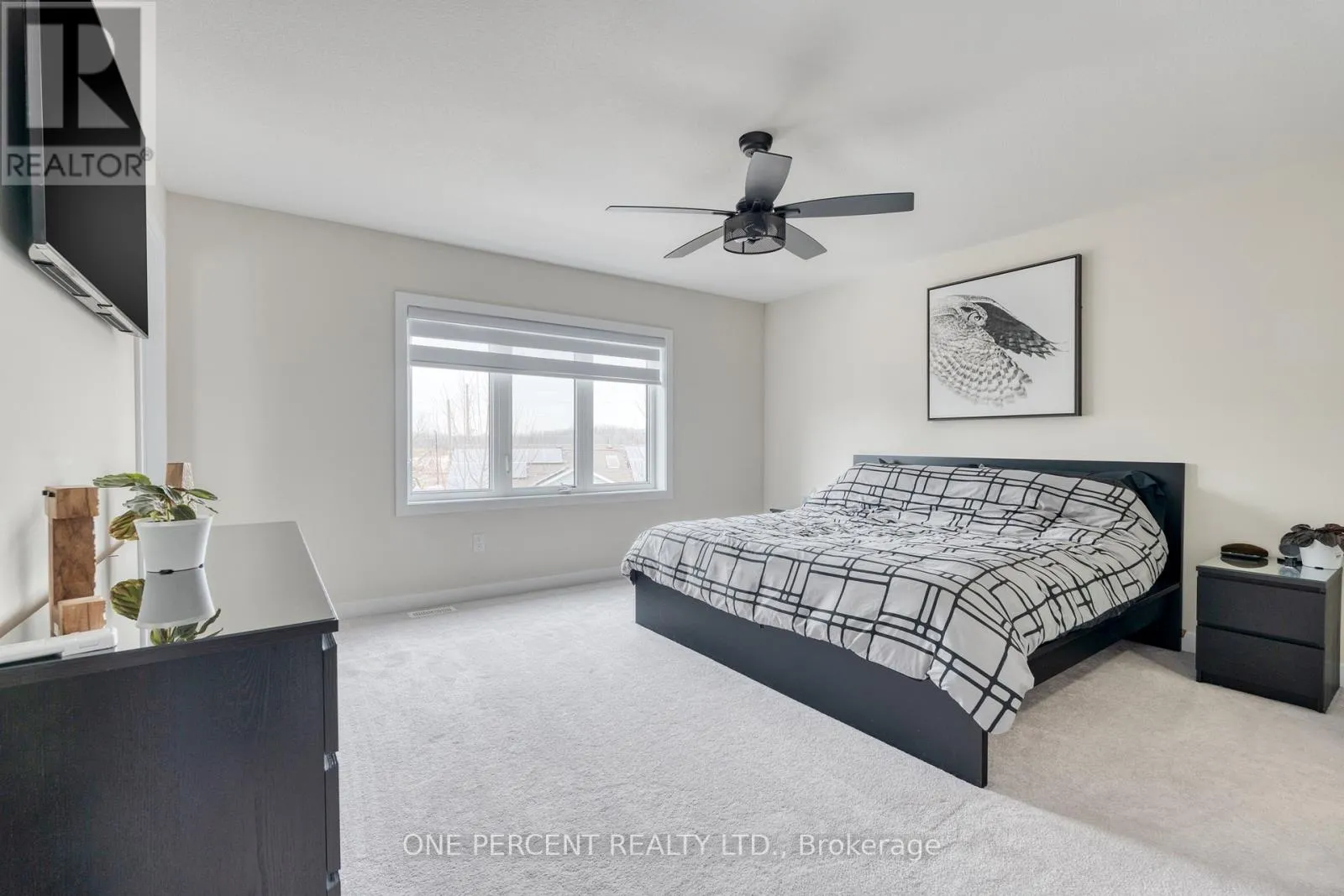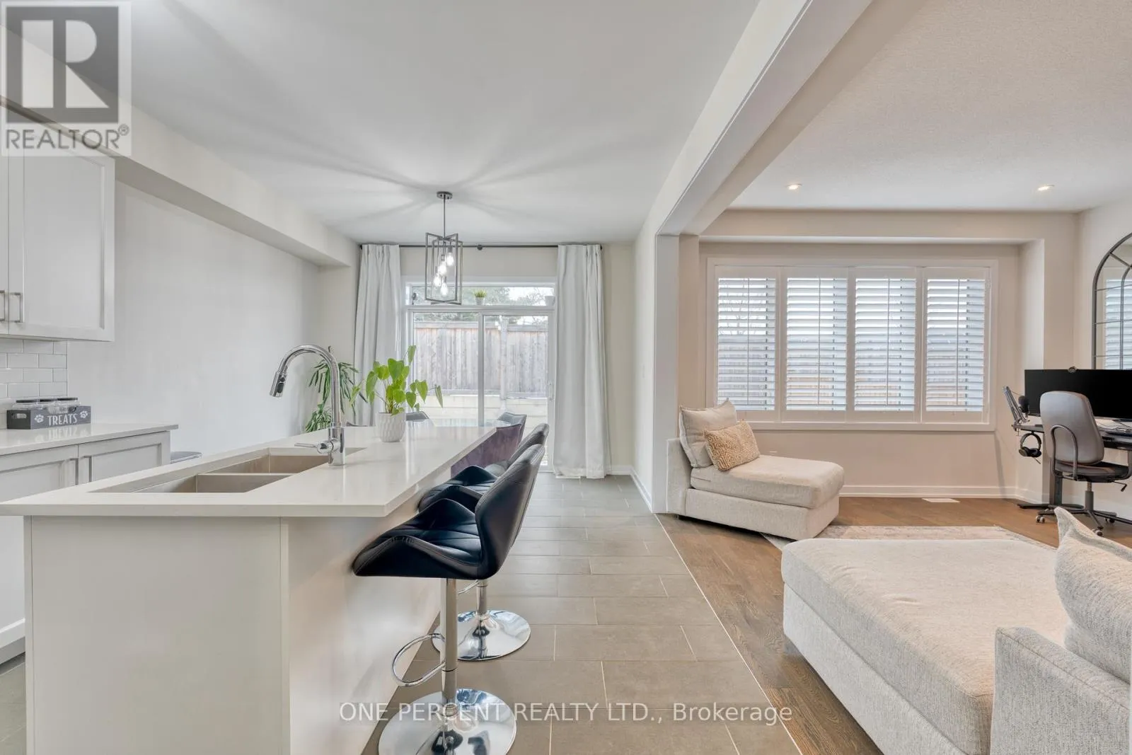 Situated in a quiet neighborhood near the Grand River, this 1,893 square foot home is less than two years old and has been well-maintained. The interior features nine-foot ceilings and hardwood flooring across the entire main level, complemented by a matching oak staircase. The kitchen is finished with quartz countertops, dark stainless steel appliances, and shaker cabinetry. In the adjacent