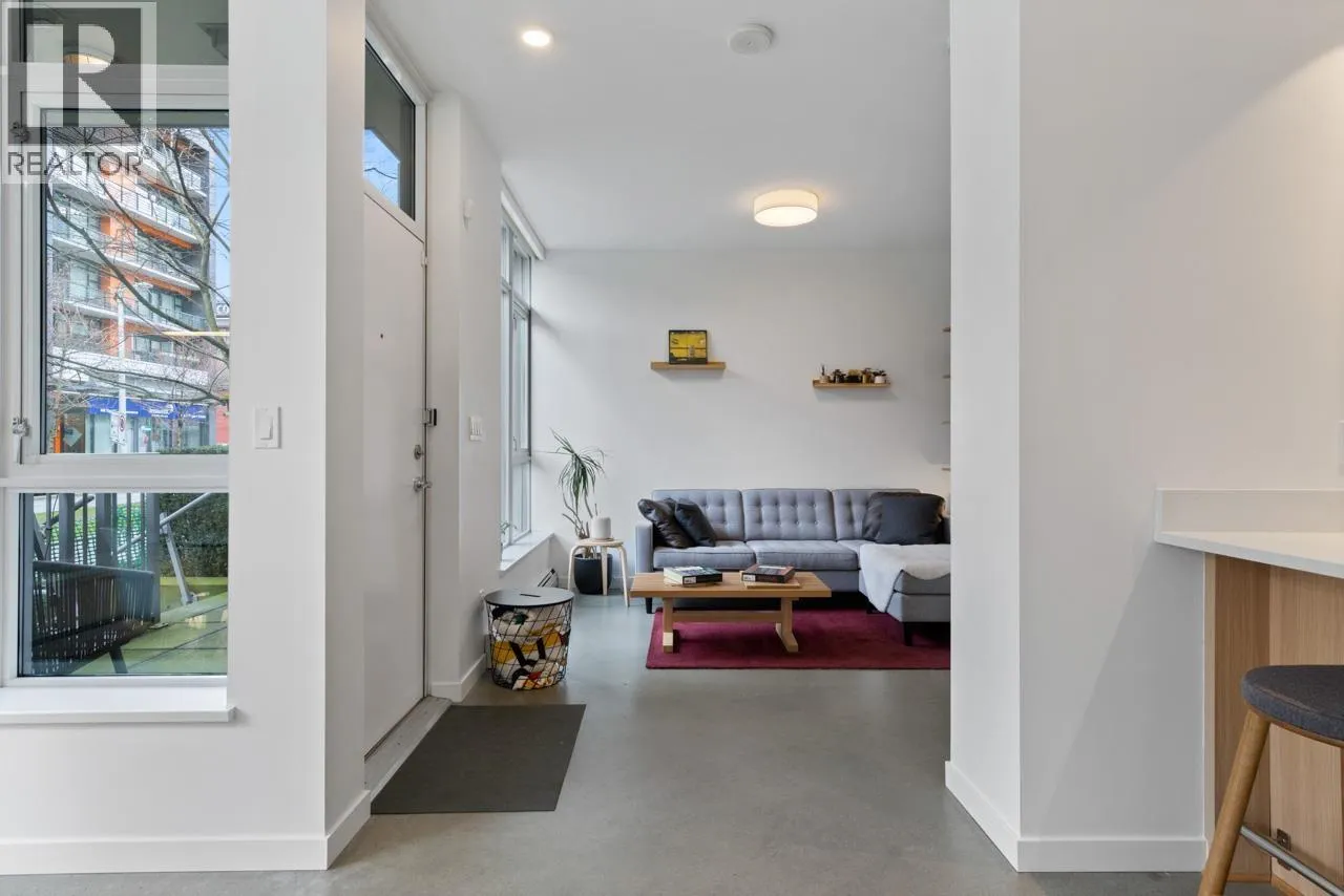 Big, cool & modern 2 level Olympic Village townhome with polished concrete floors, big windows & tasteful finishing. You’ll love the open kitchen with a gas range, 2 big bedrooms up, 2 & 1/2 spa-like bathrooms, flex space & abundant storage. As part of Wall Centre False Creek you’ll have direct access to 2 guest suites, 2 gyms, meeting