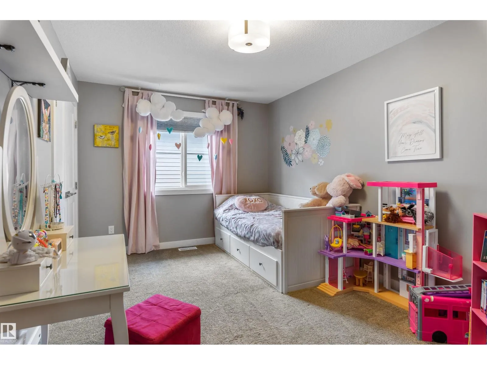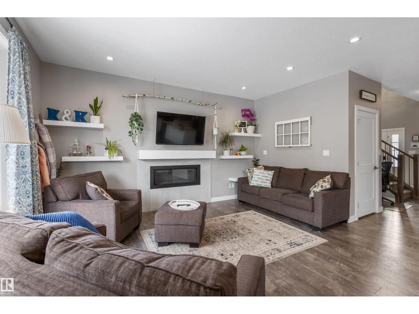 Discover this gorgeous 2 storey home w/ side entrance, located in Schonsee. The main floor has 9ft. ceilings, 12×24 ceramic tiles, excellent quality laminate flooring, bright gourmet kitchen complete w/ gas stove, quartz countertops, soft close drawers, beautiful large island, spacious walk thru pantry & large dining room. The great room features a modern 45” gas f/p & large windows.