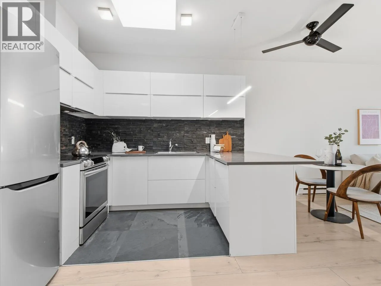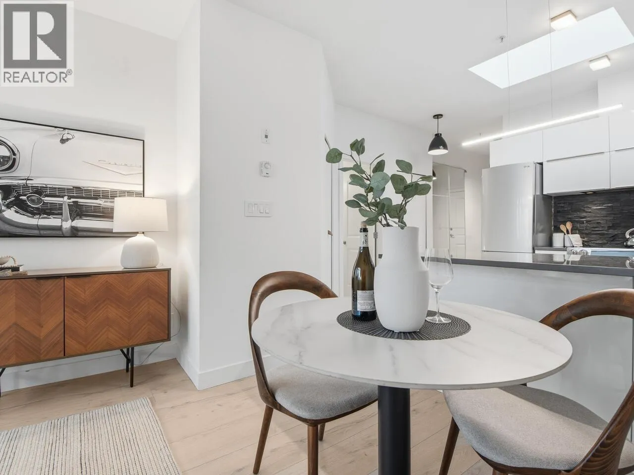 Welcome to the Mondella – experience the best of Fraserhood with this move in ready, top-floor penthouse home. Bathed in morning light from your east-facing balcony, this renovated home feels incredibly airy with 9′ ceilings and a bright skylight. The layout is exceptionally functional with no wasted space – feeling larger than its 681 square ft – it offers a