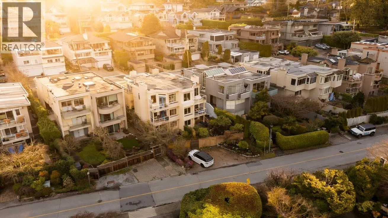 Enjoy the Ocean outlook & westside views from this Lovely Half-Duplex just steps to the Seawall & shops of Dundarave Village. This elegant condo has a spacious open floor plan, vaulted ceilings, hardwood floors and gourmet kitchen boasting SS appliance package & Viking range. Upstairs features exclusive Primary suite with 2 fireplaces and separate den. The downstairs offers a large
