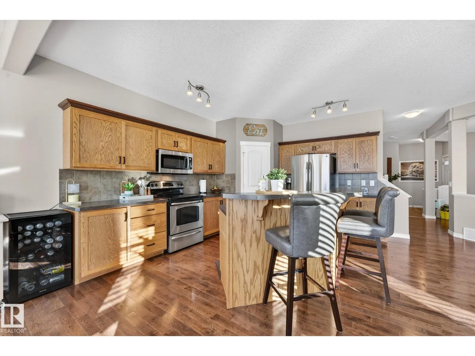 Welcome to this beautifully maintained 2,233 sq ft two-storey home with a double attached garage, located in the highly sought-after community of Walker. The main floor features rich hardwood flooring, 9′ Ceiling and large west-facing windows that fill the home with natural light. The elegant family room is highlighted by a cozy gas fireplace, creating the perfect space to relax.