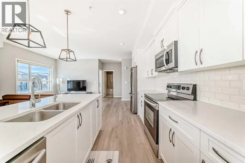 Welcome to this stunning SOUTH-FACING CORNER unit on the second floor, offering exceptional natural light from morning to evening. This modern, beautifully maintained home features a bright open-concept layout with 9’ ceilings, triple-pane windows, and durable vinyl plank flooring throughout.The stylish kitchen is the heart of the home, highlighted by a gorgeous oversized island, quartz countertops, stainless steel appliances, and