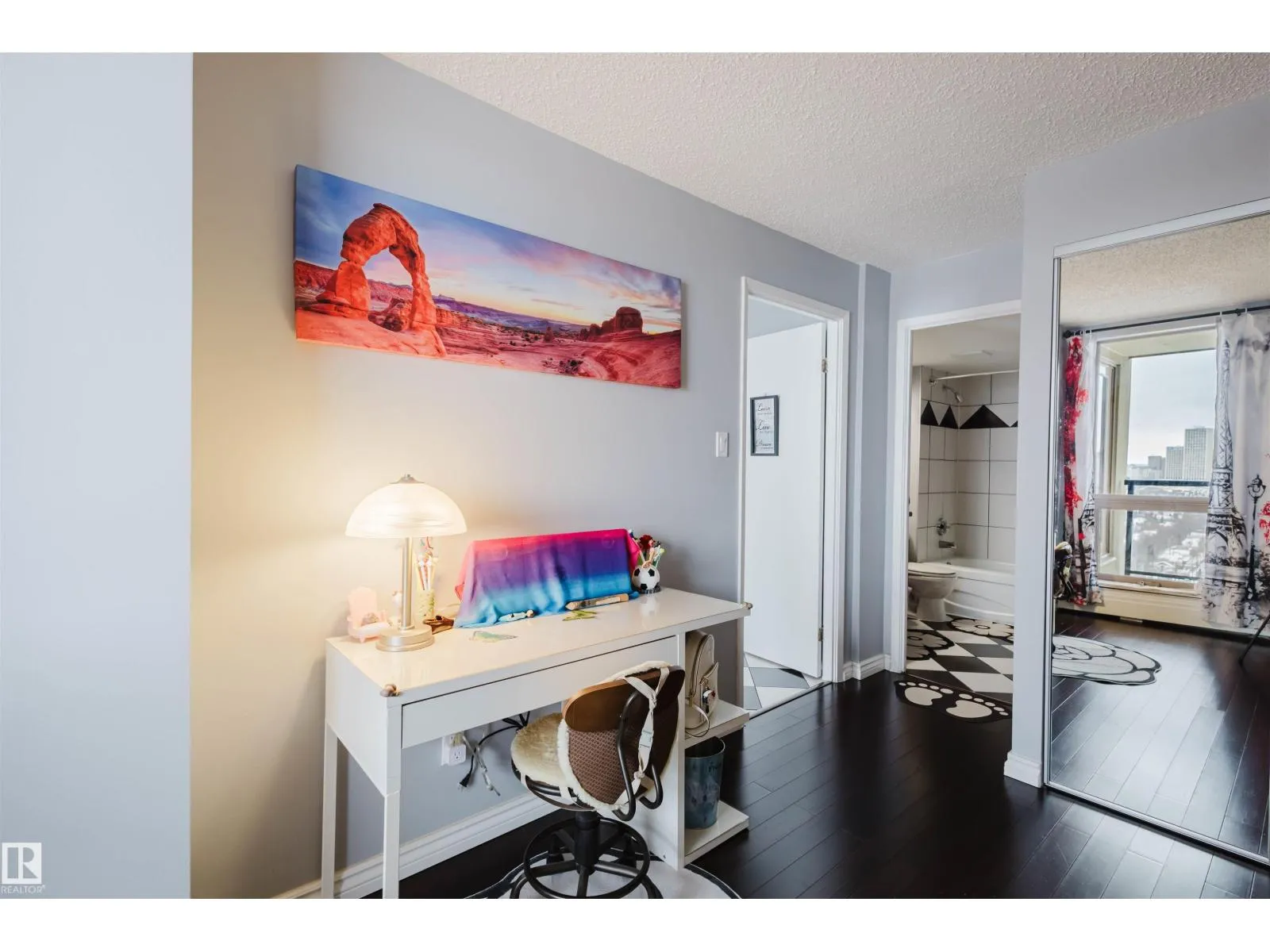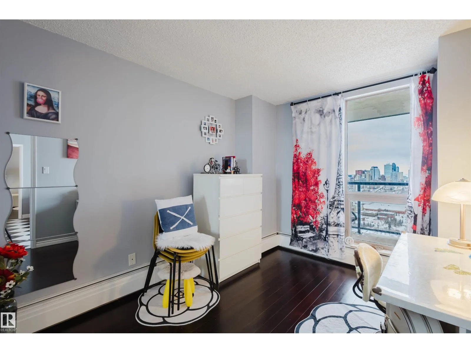 Enjoy breathtaking views in this stunning 18th-floor unit located in the quiet concrete building Waters Edge on scenic Saskatchewan Drive.This spacious 2 bedroom, 2 bathroom home offers an exceptional layout and comfortable urban living with panoramic views of Downtown and the beautiful River Valley.The modern updated kitchen features stainless steel appliances,stylish tile backsplash,and a convenient walk-in pantry.Floor-to-ceiling windows fill the