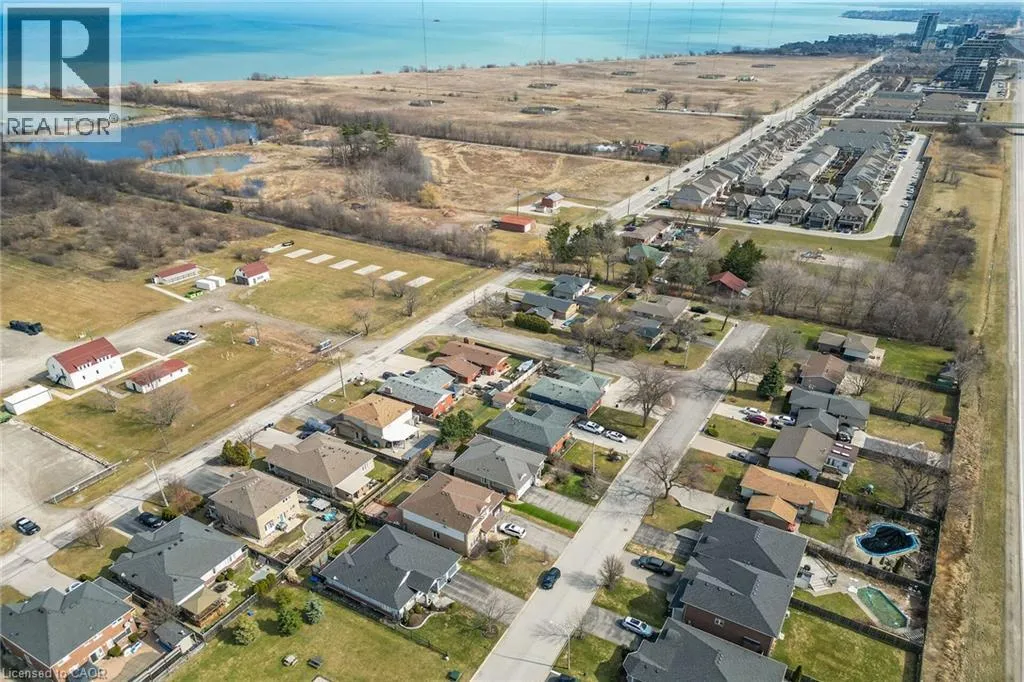 a generous living and dining area with hardwood flooring, highlighted by two oversized bay windows that fill the space with natural light. The main floor also features an eat-in kitchen, four-piece bathroom, and three lovely bedrooms with new carpeting, including a spacious primary bedroom. The fully finished lower level adds approximately 850 sq. ft. of additional living space, offering exceptional versatility. Here you’ll find a large recreation room with a cozy gas fireplace, an updated three-piece bathroom, a sizable games or hobby room, and an additional room with a large window that could easily serve as a bedroom, office, or guest space. Step outside to your private backyard retreat, complete with a well-maintained in-ground pool. The pump was replaced approximately two years ago, and the liner—installed around 2015—remains in good condition. The home also features an attached single garage and a large aggregate and stamped concrete driveway, providing ample parking. Mature landscaping enhances the home’s curb appeal, creating a welcoming first impression. Ideally located just minutes from Fifty Point Conservation Area, the beachfront, scenic walking trails, dining, shopping, Costco, and convenient highway access. This home is truly flexible, perfect for families, downsizers, or anyone seeking space, comfort, and location all in one. (id:62650)