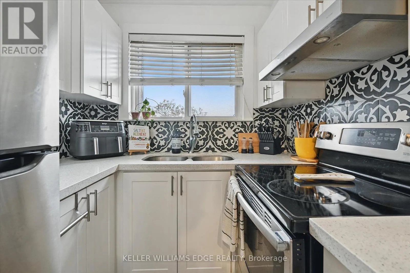 Welcome to this bright and stylish 1-bedroom, 1-bathroom condo offering 618 square feet of comfortable, well-designed living space on the forth floor of a quiet and well-maintained building in East Hamilton. The modern kitchen features quartz countertops, a double undermount sink, and a convenient breakfast bar, seamlessly opening into the living area. From here, step out onto your private balcony-an