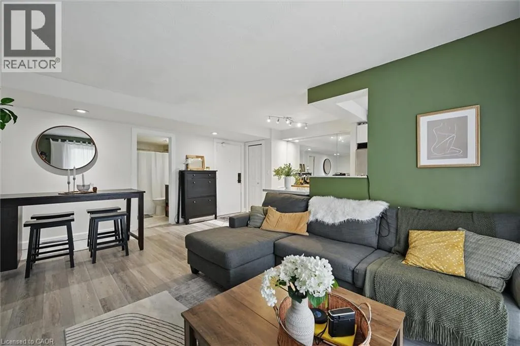 Welcome to this bright and stylish 1-bedroom, 1-bathroom condo offering 618 square feet of comfortable, well-designed living space on the forth floor of a quiet and well-maintained building in East Hamilton. The modern kitchen features quartz countertops, a double undermount sink, and a convenient breakfast bar, seamlessly opening into the living area. From here, step out onto your private balcony—an