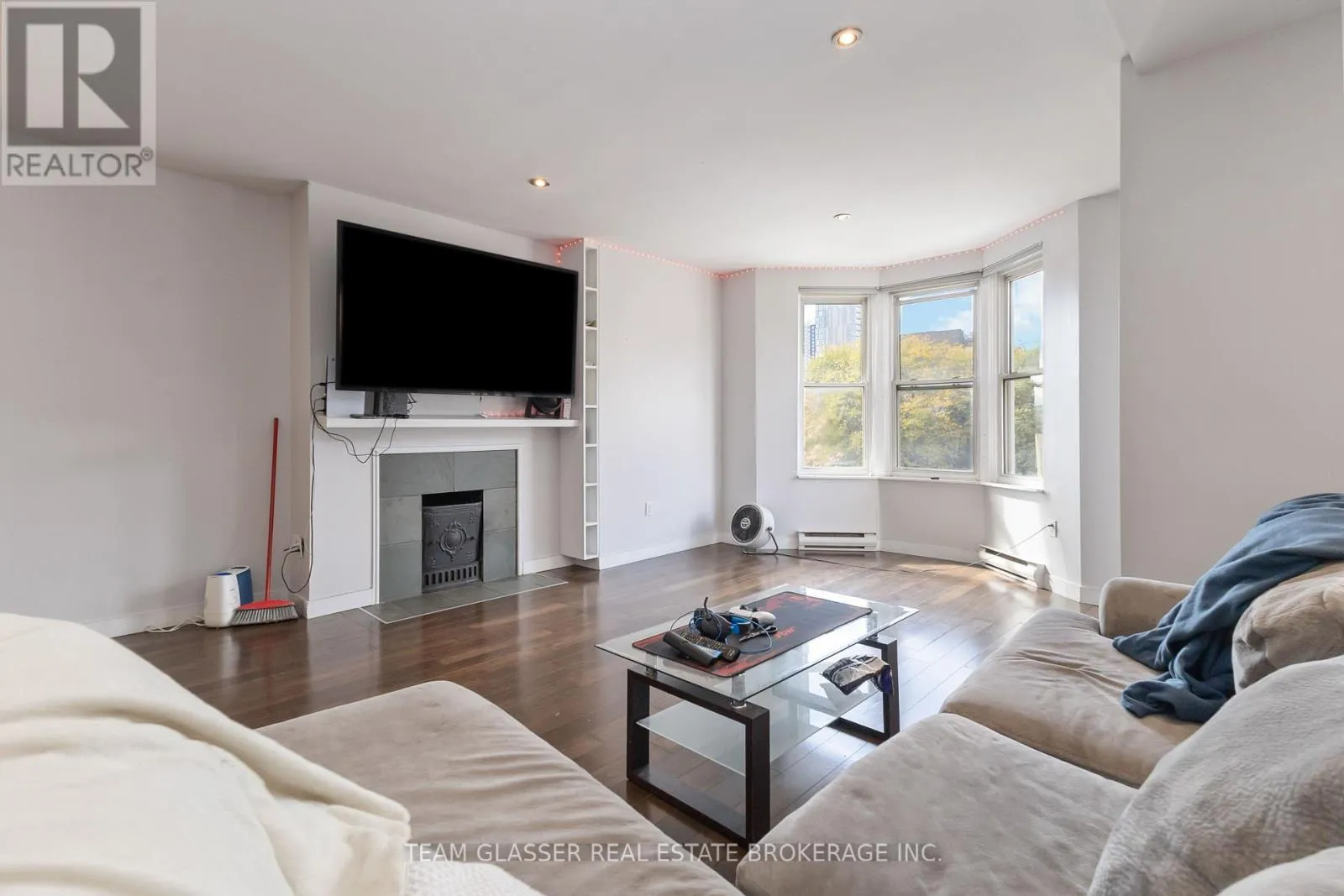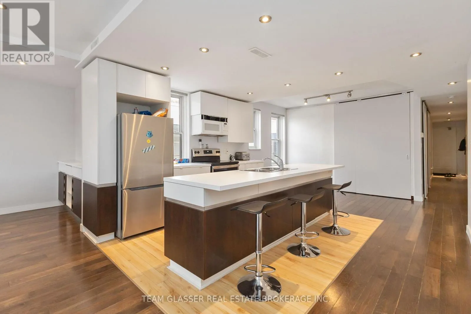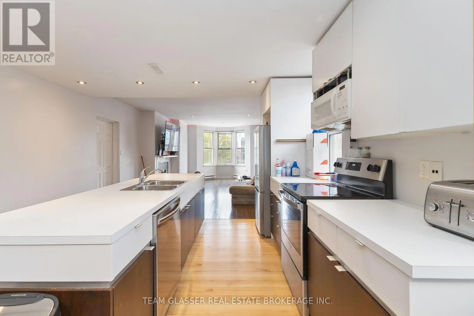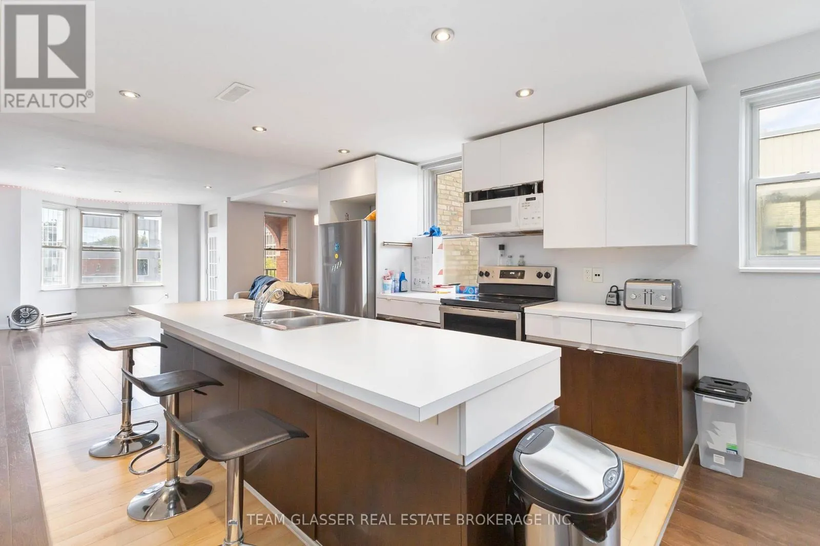 Discover the pinnacle of downtown living in this stunning oversized one-bedroom condo, easily convertible back to two bedrooms, perfectly located across from One London Place. This top-floor gem with over 1000 square feet, offers breathtaking views of Downtown London and combines modern updates with charming architectural character. The spacious open-concept layout is ideal for both entertaining and everyday life, featuring