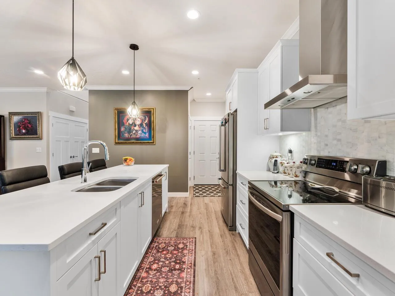 Pamper yourself in this 3,530 sf end unit, air conditioned, Prestwick townhome w/primary bdrm on the main & the feel of a luxury home w/gorgeous finishing, attractive laminate flrs, 9′ ceilings w/attractive crowns, spacious open plan, a/c & much more. This is one of the largest units in the complex. Mn level boasts entertainment sized great rm w/cozy elec