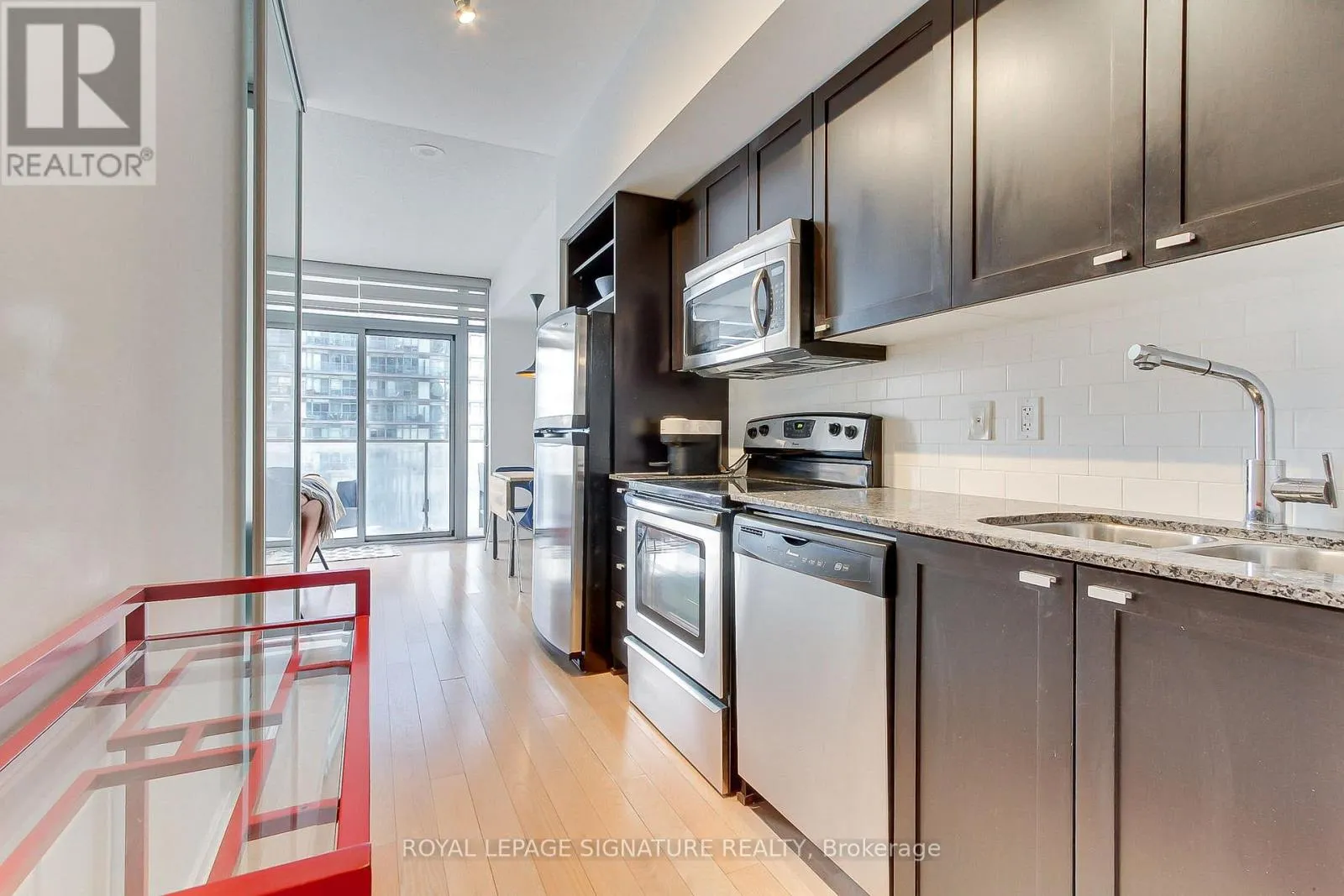 Experience the perfect harmony of nature and urban sophistication. With a prime Southwest exposure, this modern suite is flooded with natural light through floor-to-ceiling windows and features soaring 9 ft ceilings with upgraded flooring throughout and custom blinds. The functional, open-concept design is anchored by a contemporary kitchen boasting stainless steel appliances and a convenient breakfast bar. The spacious living