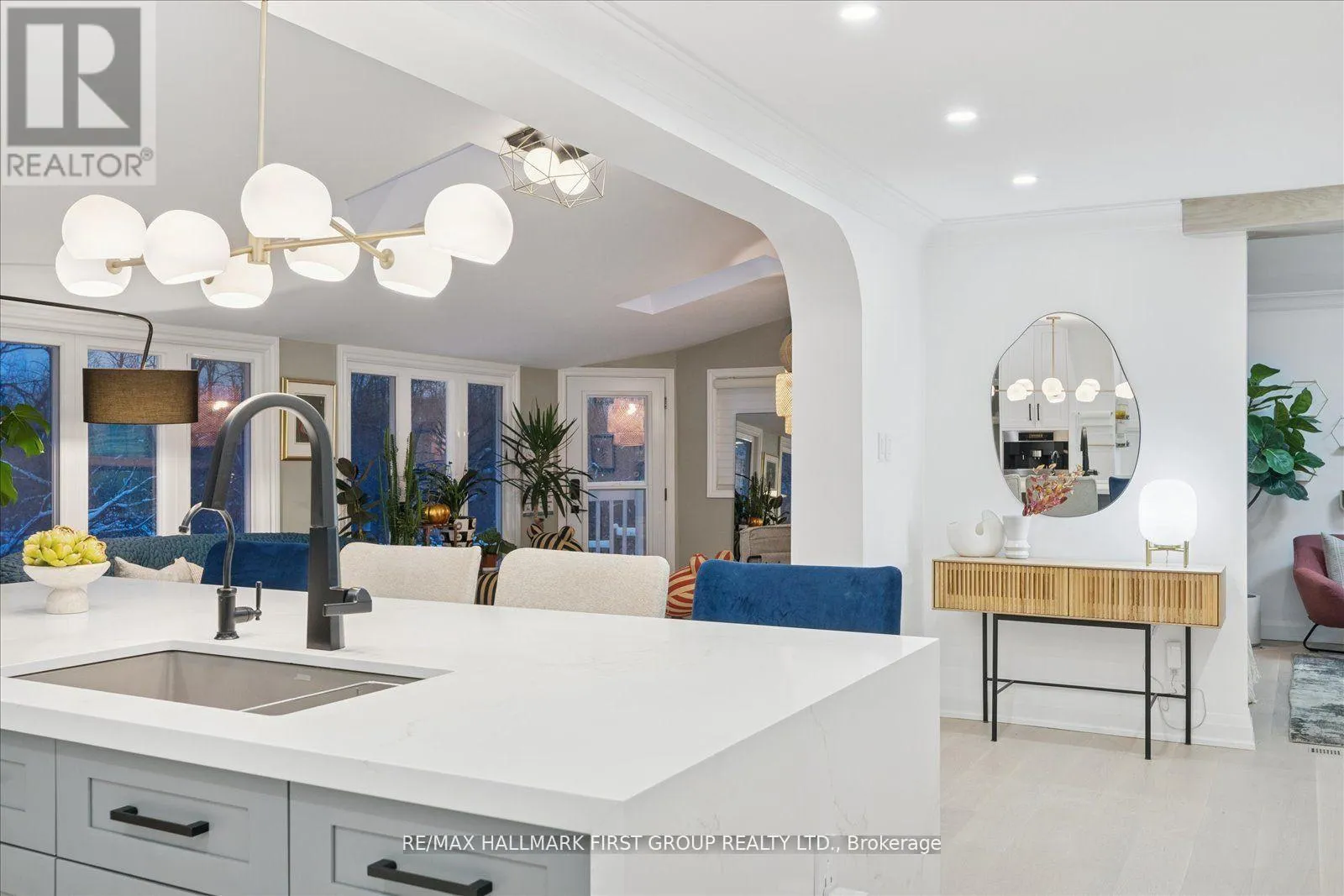 Welcome to an exquisitely renovated, designer-curated home in a coveted South Ajax location close to the lake, backing onto protected greenspace with a peaceful river flowing into Lake Ontario. Private, serene, and surrounded by nature, this exceptional residence offers refined finishes and effortless functionality.Completely renovated in 2022, the home features rich hardwood flooring, elegant crown moulding on the main floor,