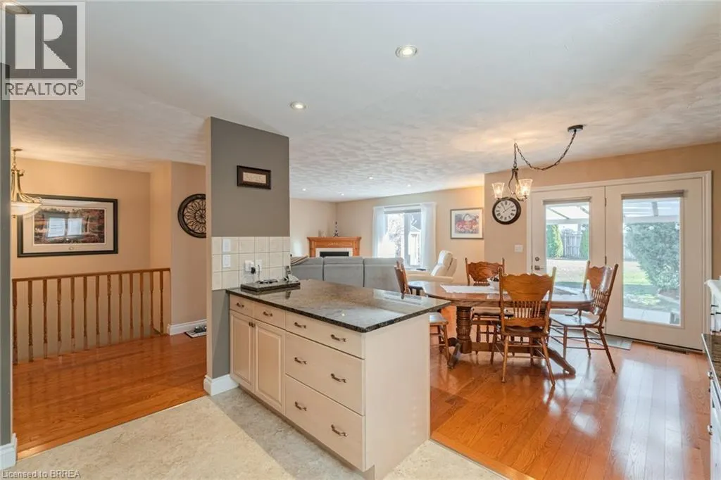 Welcome to this beautifully maintained brick bungalow in Simcoe’s desirable east end, offering over 2,500 sq. ft. of finished living space and no rear neighbours for added privacy. The open-concept living and dining area features hardwood flooring and a cozy corner natural gas fireplace. The kitchen offers granite countertops, modern appliances, and a convenient breakfast peninsula. Step outside to an