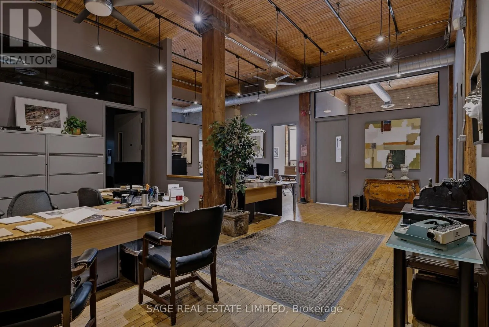 Rare opportunity to share stunning professional office space in fully restored grand century hard loft warehouse located at the Galleries on Morrow Avenue. Exposed post and beam construction and brick walls, hardwood floors, soaring wood ceilings with massive windows and abundant natural light. Direct grade access from courtyard to 3000 ft.2 space featuring beautiful reception area with fireplace, large boardroom,