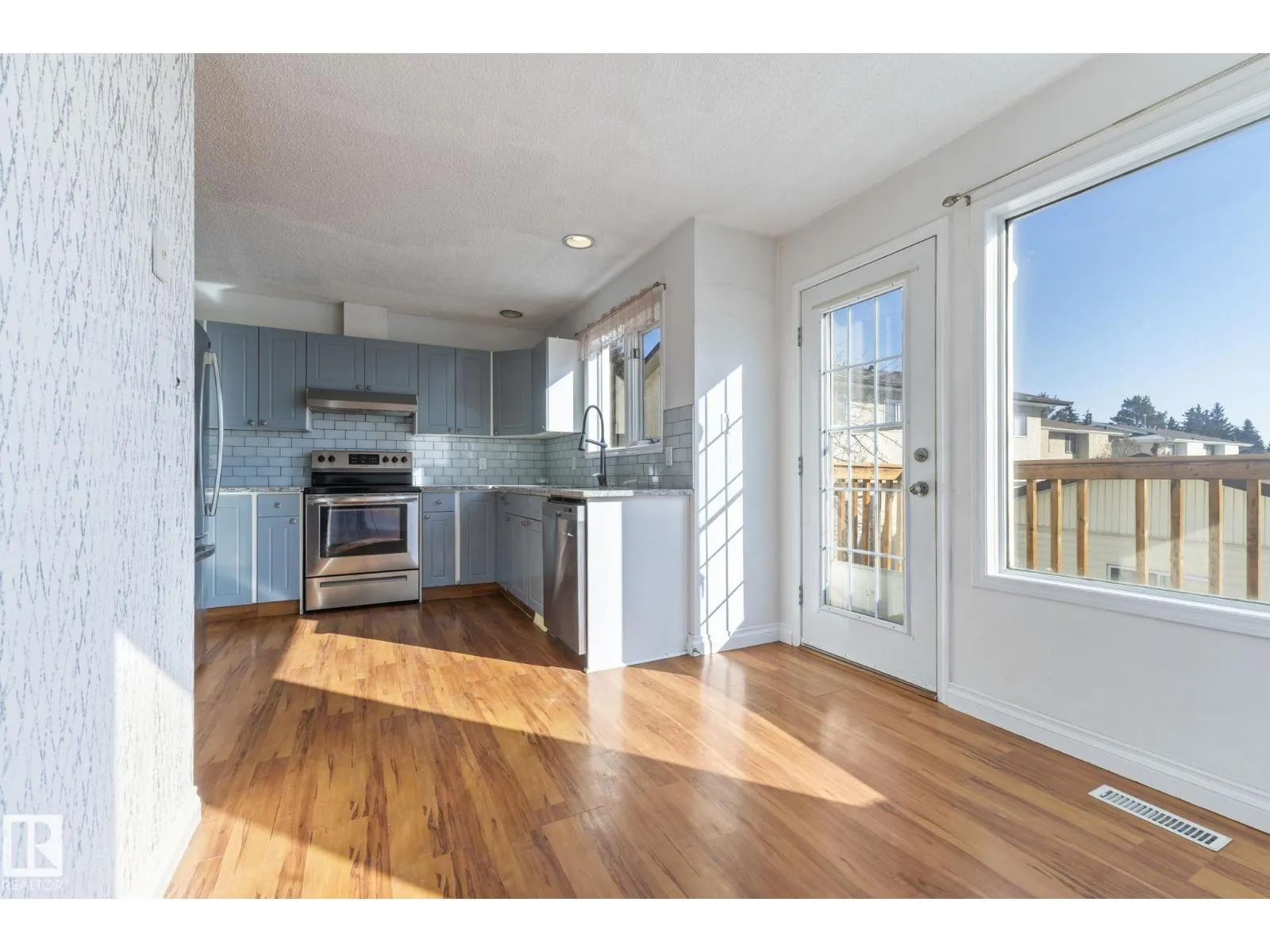 Welcome to this bright walkout end-unit townhouse offering over 1,700 sq ft of living space with large windows that fill the home with natural light. The main floor features a spacious living room, functional kitchen, dining area, and convenient 2-piece bathroom. Upstairs you’ll find newer flooring, a large primary bedroom with a private 4-piece ensuite, along with two additional bedrooms