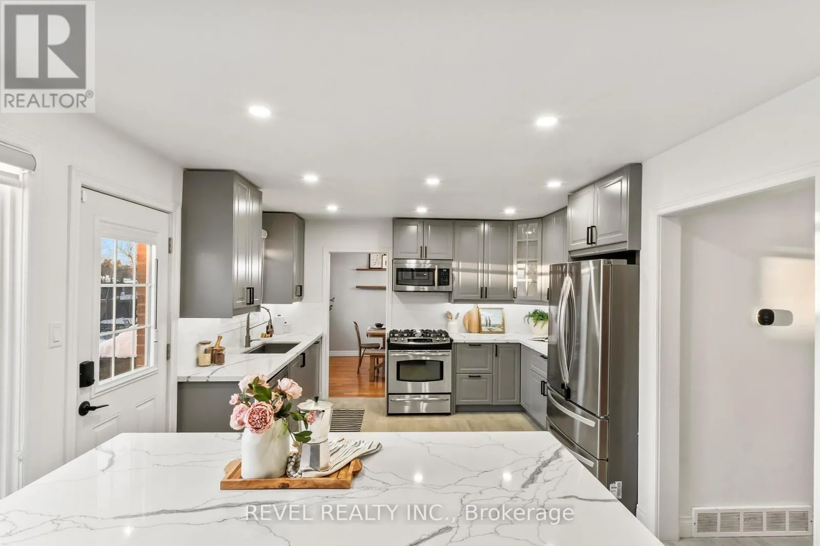 A newly renovated family home, nestled on a picturesque, park-like lot fronting 124′ in a quiet cul-de-sac. This residence blends contemporary style with functional comfort, perfect for buyers seeking quality, space, and a true sanctuary. The main floor features a cozy living room with a wood-burning fireplace and gleaming hardwood floors that flow seamlessly into the formal dining room, perfect