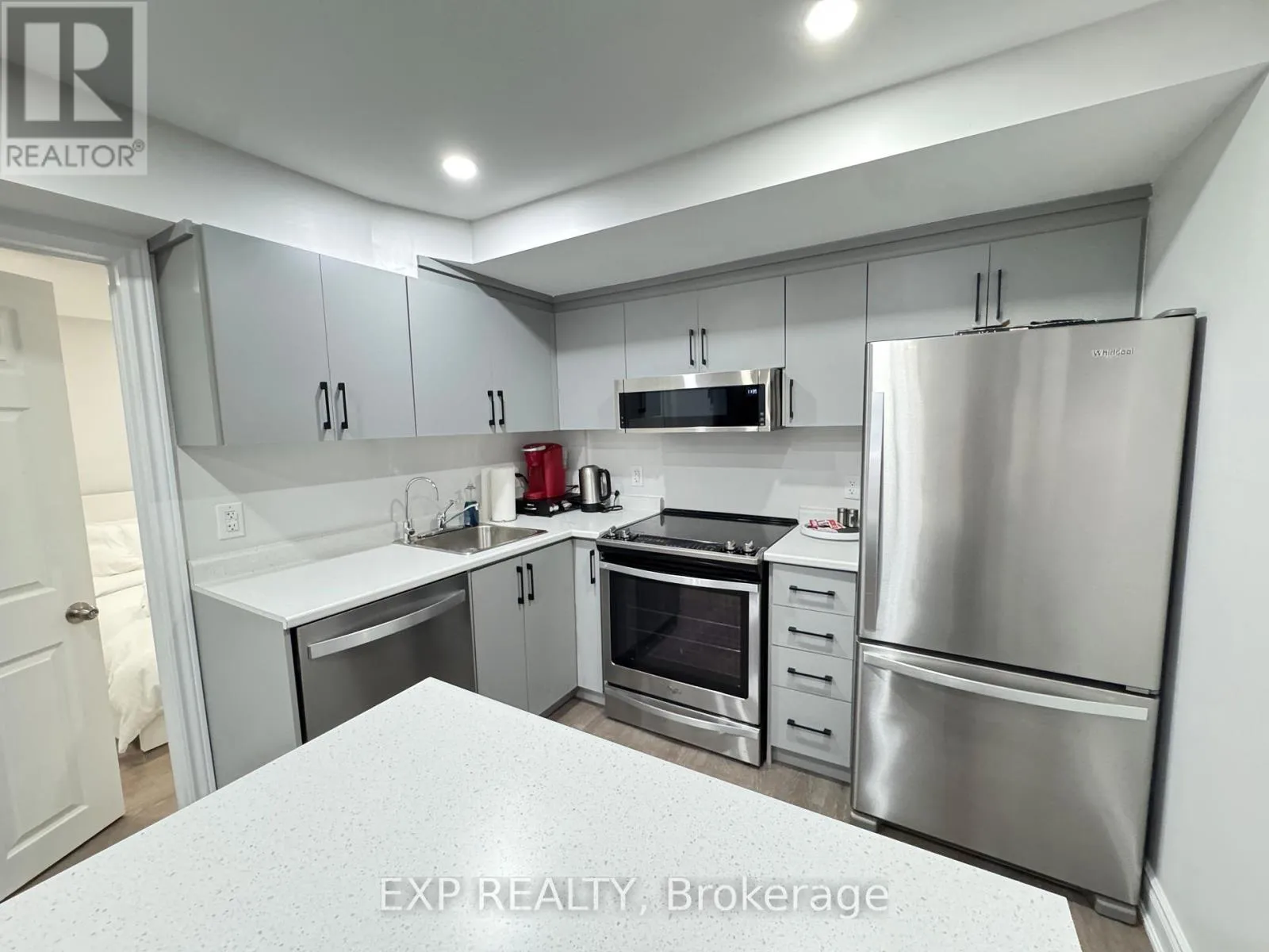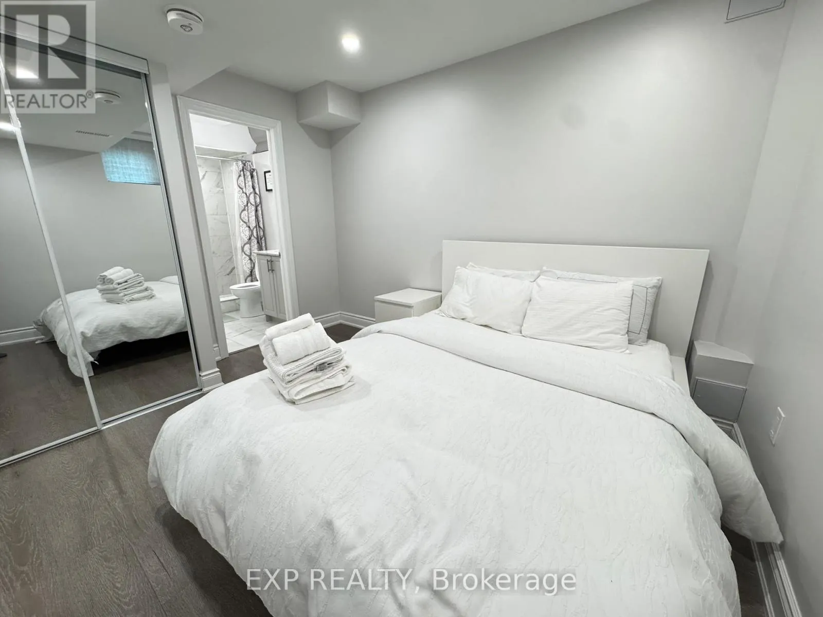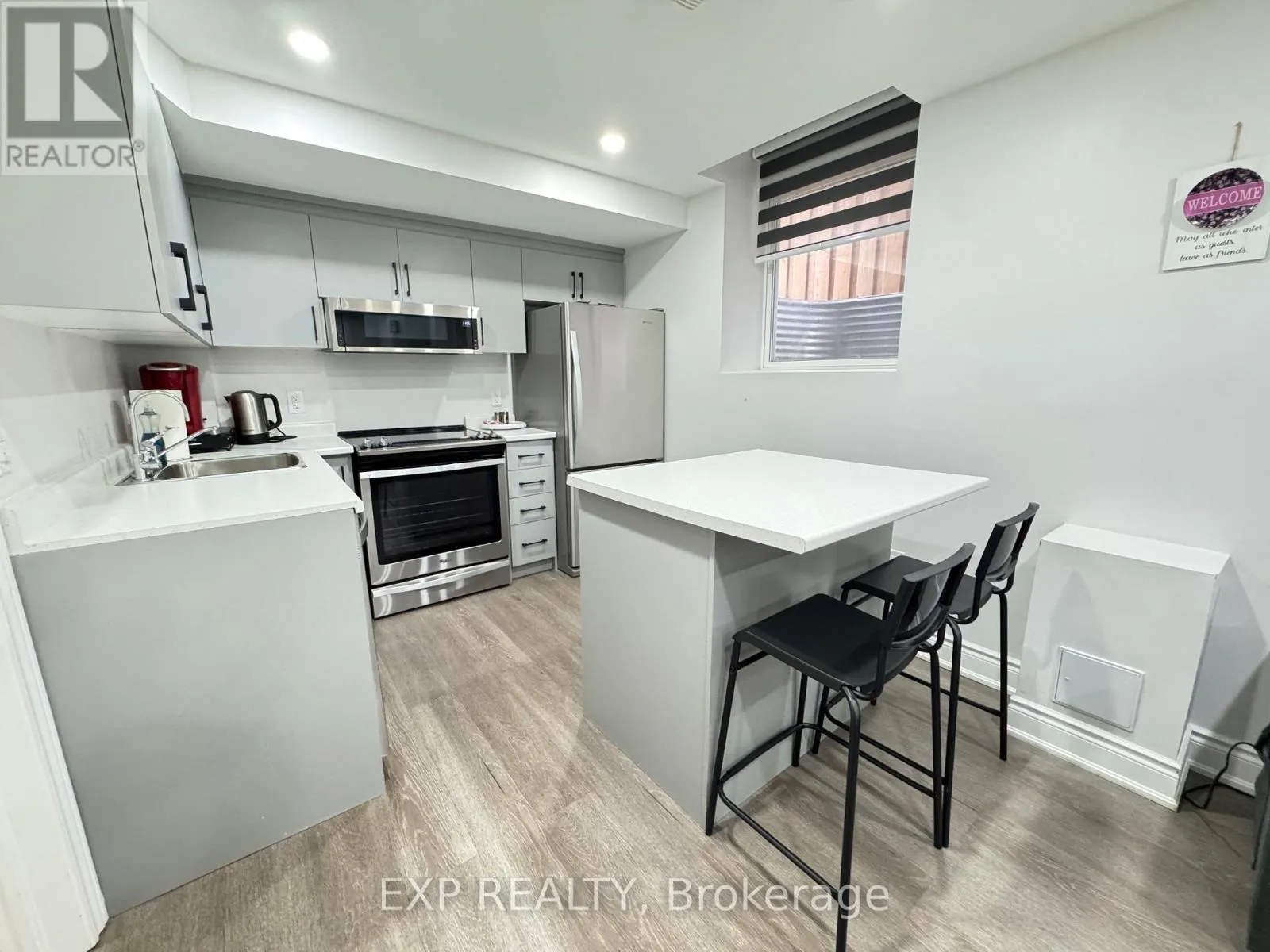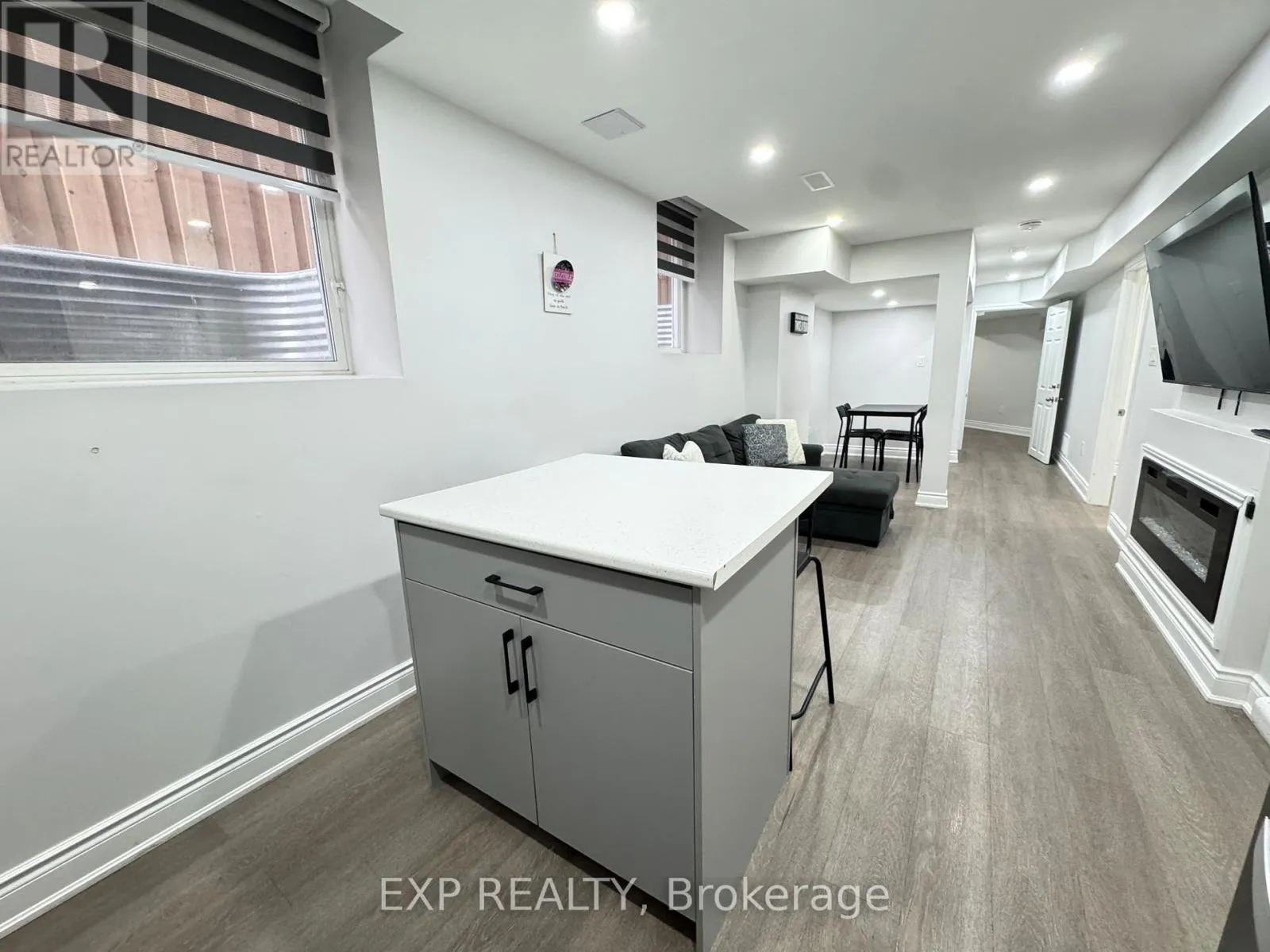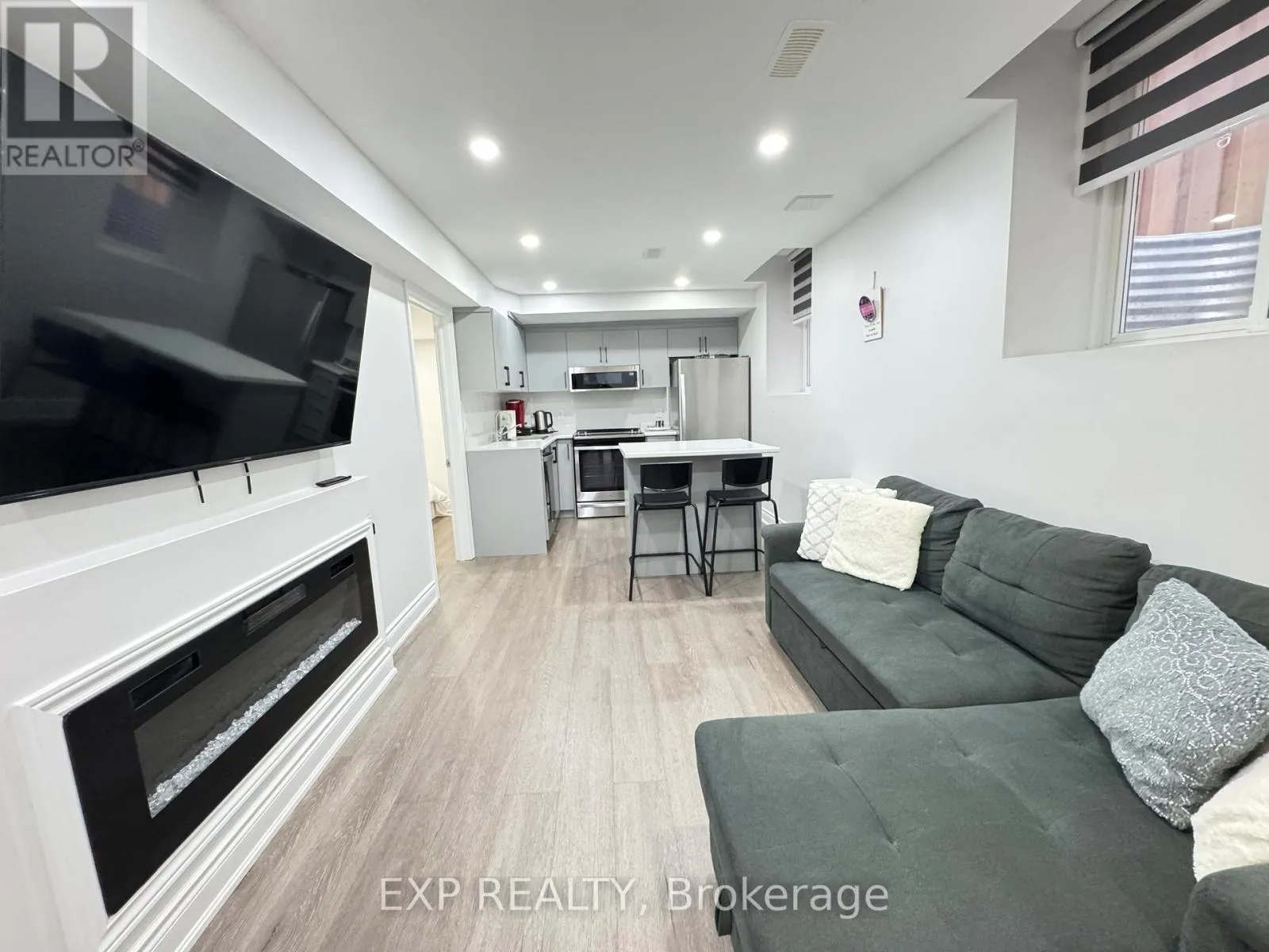 Beautifully renovated and well-maintained two-bedroom, two-bathroom basement apartment available for lease. This modern unit features large above-grade windows that provide plenty of natural light, along with room-darkening blinds for added privacy. The open living area includes an electric fireplace and offers comfortable space for relaxing or entertaining. The suite includes a full kitchen equipped with a refrigerator, electric stove/oven, and