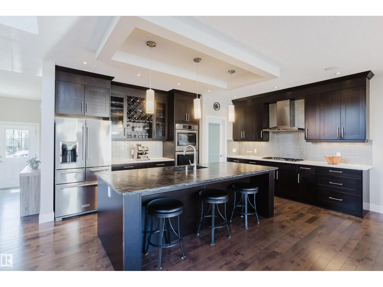 Located in the prestigious community of Copperwood in The Hamptons, this exceptional two-storey home offers west exposure, peaceful tree views, and immediate access to nearby parks and pathways. With 4,069 sq.ft. of professionally designed living space. Features 4 bedrooms, 2 dens, and 5 bathrooms, a dramatic vaulted great room, functional walk-through pantry, mudroom, upper-floor laundry and bonus room. The