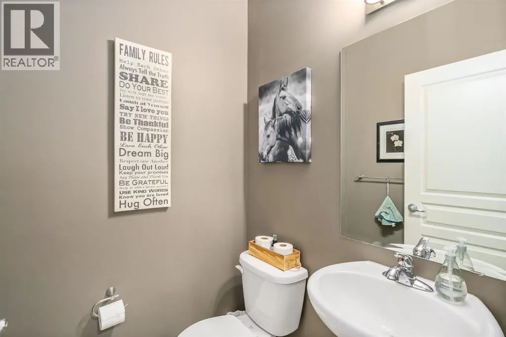 featuring a private deck with a custom wood privacy feature.The bright open-concept main floor is designed for comfortable everyday living and entertaining. Large windows fill the home with natural light while durable laminate plank flooring and recessed lighting add warmth and modern style throughout. The kitchen is a standout, featuring rich mahogany cabinetry, granite countertops, stainless steel appliances, a central island with bar seating, and a spacious pantry. The living room is anchored by a custom fireplace mantel with tile accents, creating a natural gathering space. A practical mudroom and main floor laundry are conveniently located just off the garage.Upstairs, an impressive 18-foot vaulted ceiling welcomes you into the foyer and continues into the oversized bonus room, creating a bright and spacious upper-level retreat perfect for family movie nights or a kids’ lounge. The thoughtfully designed layout separates the living area from the sleeping quarters, which include two well-appointed bedrooms and a serene primary suite featuring expansive windows, a walk-in closet, and a relaxing ensuite with soaker tub, glass stand-up shower, and tile accents. Premium carpet throughout the upper and lower levels adds warmth and comfort.The fully developed basement, professionally completed by the builder, offers valuable additional living space with 9-foot ceilings, an oversized bedroom, full bathroom, and a peaceful den ideal for a home office, study, or quiet retreat. This level also includes under-stair storage and a dedicated mechanical room. The hot water tank was replaced approximately four years ago for added peace of mind.Located in the family-oriented community of The Ranch, residents enjoy nearby parks, playgrounds, green spaces, and walking pathways. Excellent schools including George Freeman School, Wheatland Elementary, Crowther Memorial Junior High, and Sacred Heart Academy are close by. Strathmore’s recreation amenities — including the Strathmore Motor Products Sports Centre, Family Centre Arena, and Strathmore Golf Club — along with shopping, restaurants, medical clinics, and the Strathmore District Health Services hospital are all just minutes away. Calgary is approximately 35–40 minutes away, offering an easy commute while enjoying the benefits of small-town living. (id:64429)