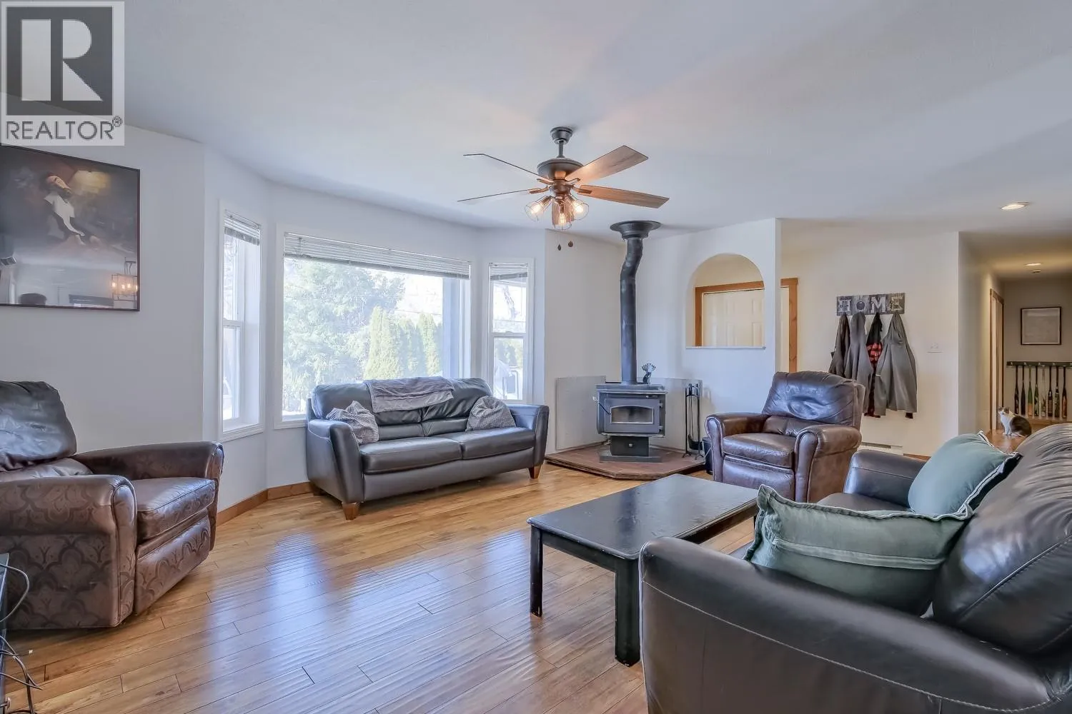 Affordable one-level living directly across from pristine Vaseux Lake! This 3-bedroom rancher offers newer siding, a ductless split heat pump for efficient heating and cooling, plus a WETT-certified wood stove for cozy winter evenings. The spacious primary bedroom features a 4-piece ensuite. Attached garage with additional surface parking. The fully fenced backyard is perfect for kids or dogs and includes