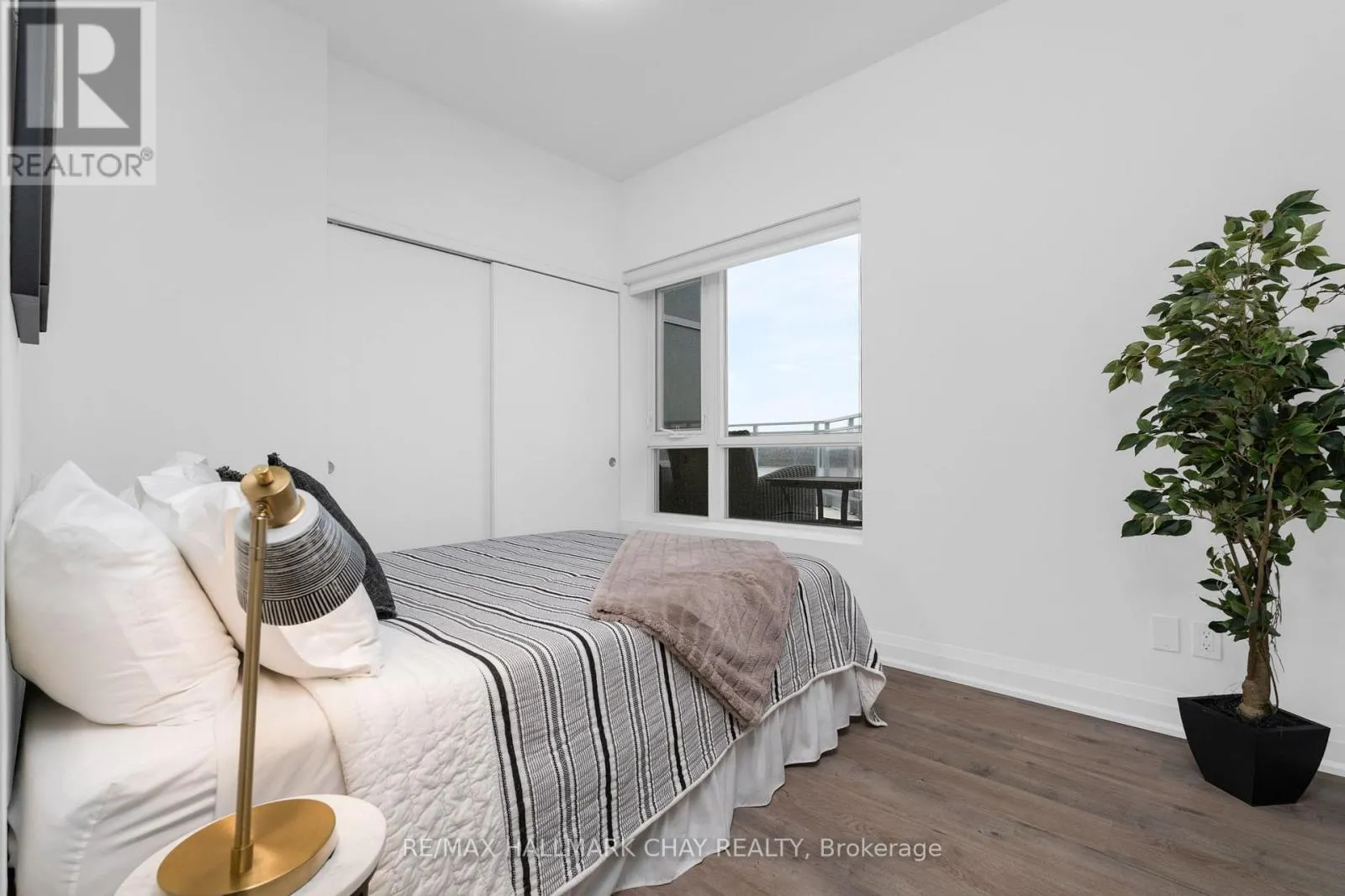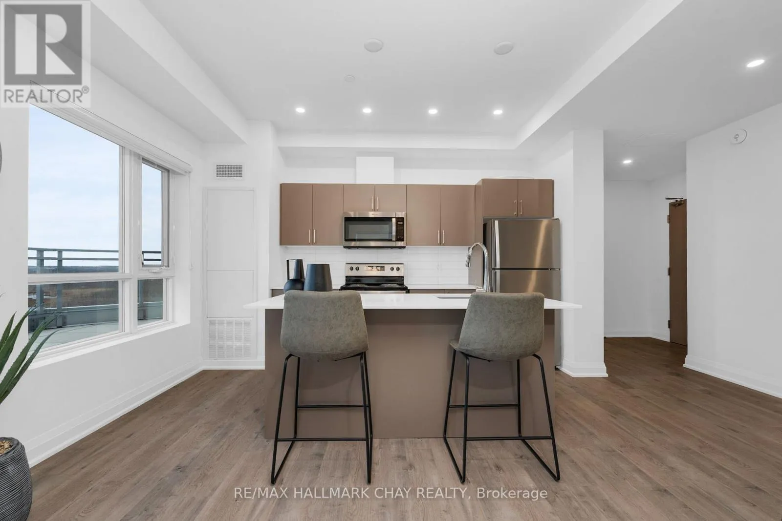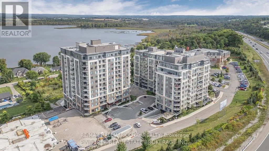 PRESENTING LUXURIOUS PENTHOUSE CONDO LIFESTYLE AT 58 Lakeside Terrace. Spacious 1398 sq.ft. penthouse with breathtaking views of Little Lake from 500 sq.ft. terrace. Unique suite with open concept layout, three bedrooms, two baths, ensuite laundry (stacked), two parking spaces and exclusive storage. Tasteful neutral decor throughout with large windows that frame a stunning view, and bathe the space in natural