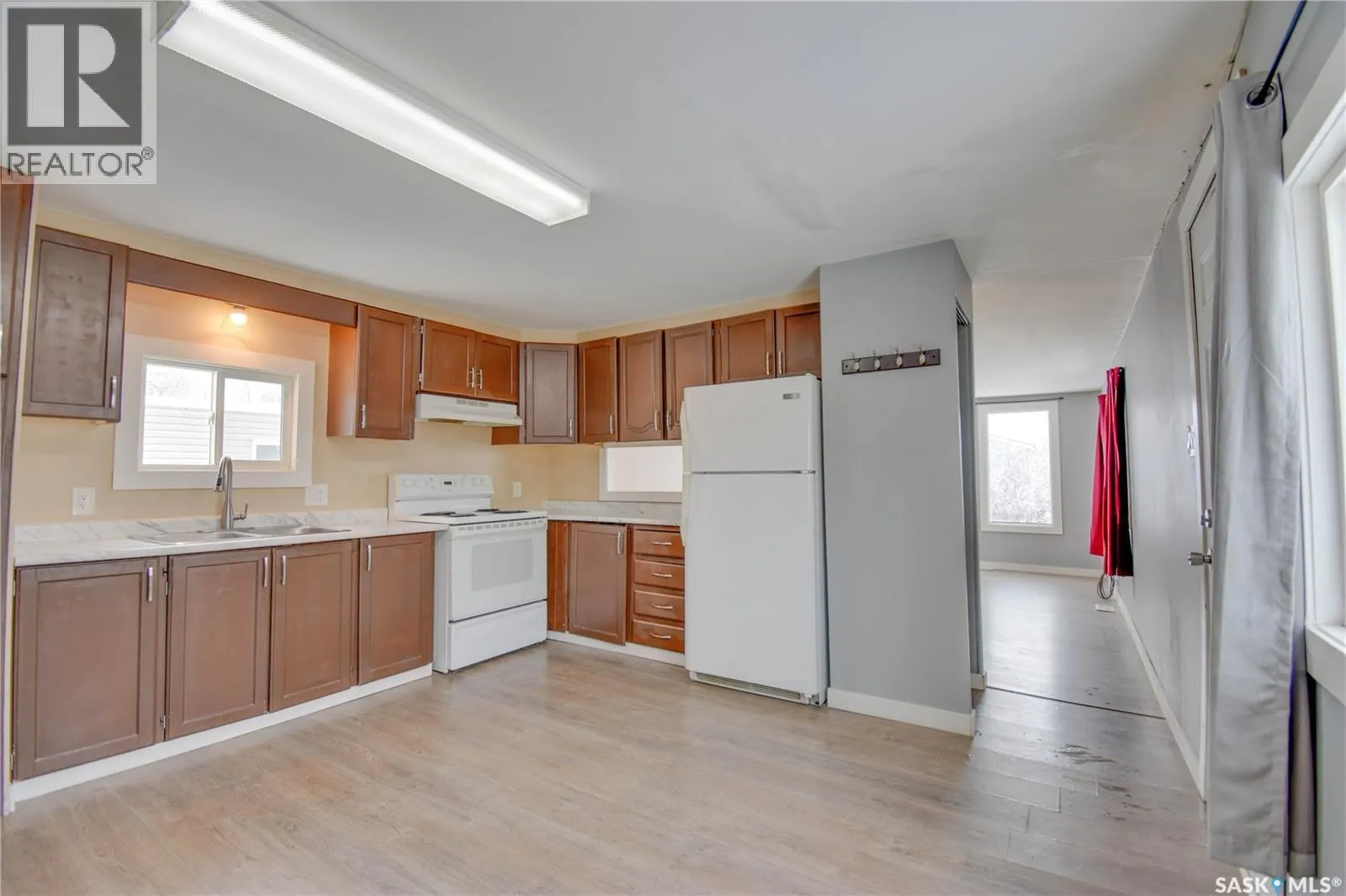 Welcome to #14 Purdue St in the wonderful town of Asquith! This very well-maintained mobile home offers plenty of great features and comfortable living. Step inside to a spacious living room featuring laminate flooring and large windows that provide an abundance of natural light. The kitchen offers painted oak cabinets, newer taps, newer hardware, a newer LED light fixture, fridge,