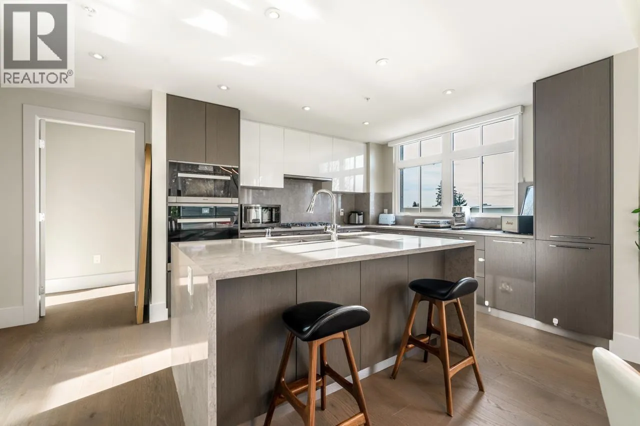 Beautiful 2 BDR & DEN PENTHOUSE unit situated on the SW corner overlooking the Kerrisdale greenway, nestled amongst the quiet tree-lined streets of prestigious Kerrisdale. The suite features a gourmet kitchen which includes European-inspired floor-to- ceiling veneer cabinetry with soft-close hardware, polished quartz countertops and backsplash, full-height Richelieu pull-out cabinets, drawers, magic coners with ample storage, Franke undermount stainless steel
