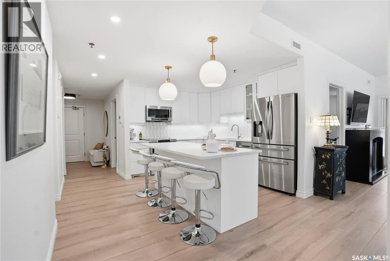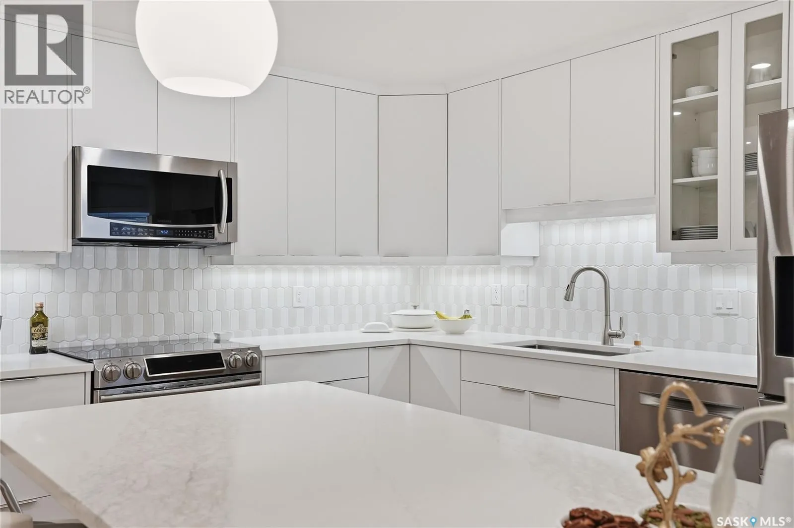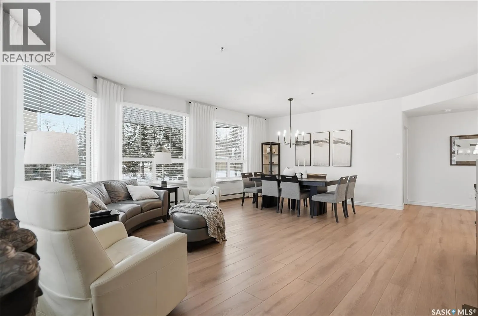 Wow!With so many upgrades, this unit shows almost like new! Truly a rare find on prestigious Sask Crescent. Stunning 1,418 sq ft, 3-bedroom main floor corner unit and a former show suite located in a quiet, well-managed complex. Enjoy beautiful river views in the fall and winter, impressive 9’ ceilings, and large panoramic windows that fill the home with natural