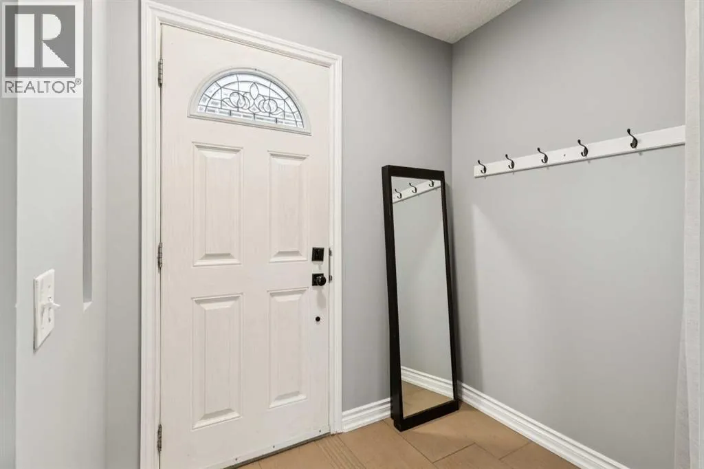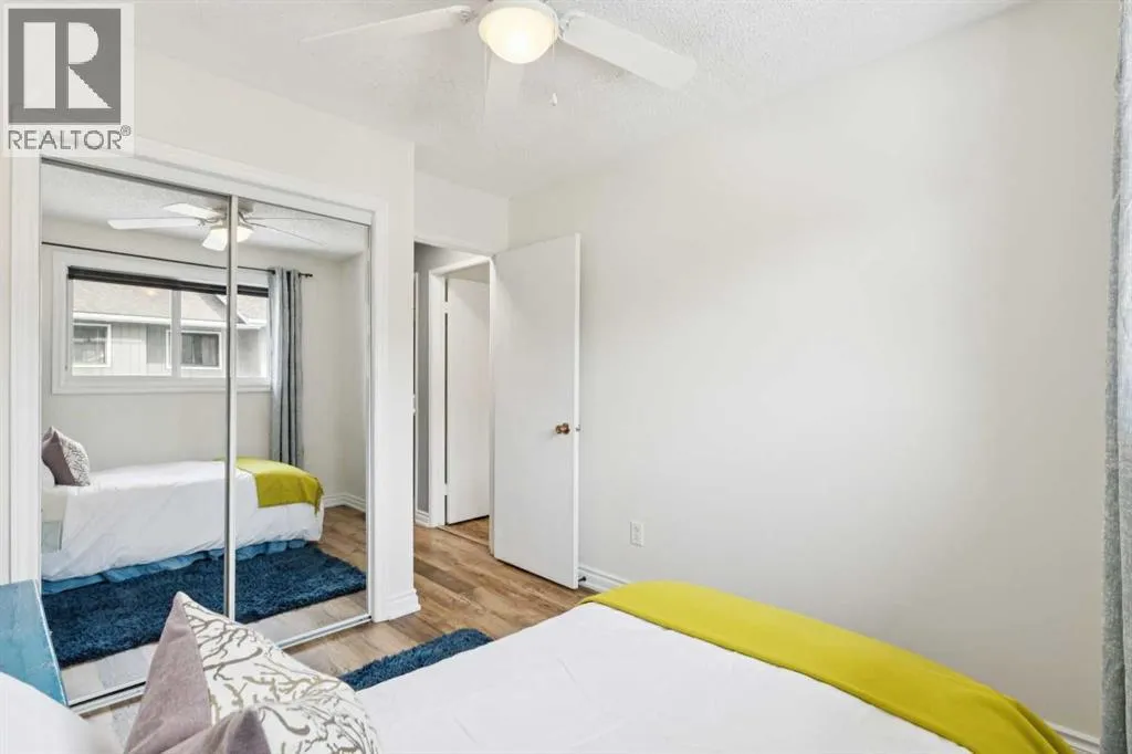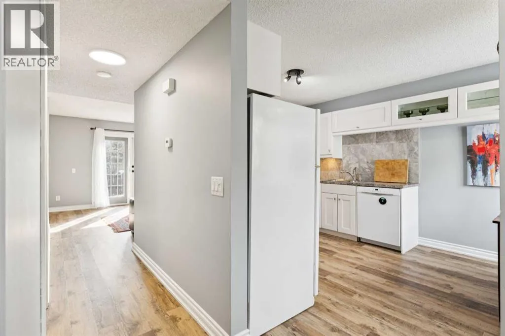 offers a bright and welcoming living room featuring a charming WOOD-BURNING FIREPLACE, perfect for cozy evenings at home. DOUBLE FRENCH DOORS from the living room open directly onto the SOUTH-FACING DECK, creating an inviting connection to the PRIVATE FENCED YARD — ideal for relaxing outdoors, A BBQ, gardening, or letting pets enjoy the space. The yard also includes a handy storage SHED for bikes, tools, and seasonal items.The RENOVATED KITCHEN offers plenty of storage with soft-close cabinetry, two large lazy Susans, and a convenient movable ISLAND that provides additional prep space when needed.Upstairs you’ll find three bedrooms, including a spacious primary bedroom with a WALK-IN CLOSET, offering great flexibility for a growing family, guest room, or home office. The UPDATED main bathroom serves the upper level.The FULLY DEVELOPED lower level expands your living space with a spacious RECREATION ROOM, a renovated 3-PIECE BATHROOM, and a large laundry room with AMPLE STORAGE.This bright and stylish home has been FRESHLY PAINTED and features NEW LUXERY VINYL PLANK FLOORING and LIGHTING throughout, giving the entire space a clean, modern feel. Additional highlights include VINYL WINDOWS and an ASSIGNED PARKING STALL with electrical plug-in conveniently located just outside the unit. The condo board also offers ADDITIONAL PARKING STALLS for rent (currently $20/month).The well-run complex has seen several recent improvements, including newly paved parking areas and updated electrical pedestals in 2024, with a new fence planned for the community this year. Condo fees include water and se wer, helping keep monthly costs predictable, and the pet-friendly community is managed by an attentive condo board. You will enjoy not having to clear snow in your parking space or on the walkways!Location is a standout feature. With an OFF-LEASH GREEN SPACE directly behind the home, dog owners and outdoor enthusiasts will feel right at home. You’ll also enjoy WALKING DISTANCE to schools, parks, transit, and a nearby commercial area with restaurants, a pub, convenience store, and everyday amenities. Just minutes away are Crowfoot Centre, the C-Train, major roadways, and the beautiful Bowness Park, making commuting and recreation easy.Whether you’re looking for an affordable first home or a solid investment property, this well-located and thoughtfully updated townhouse offers excellent value in a desirable NW Calgary neighborhood. (id:62650)