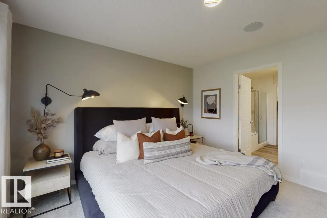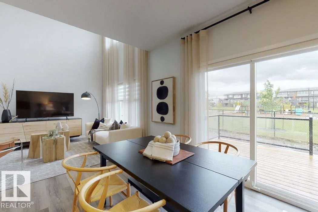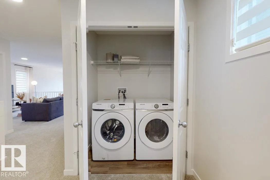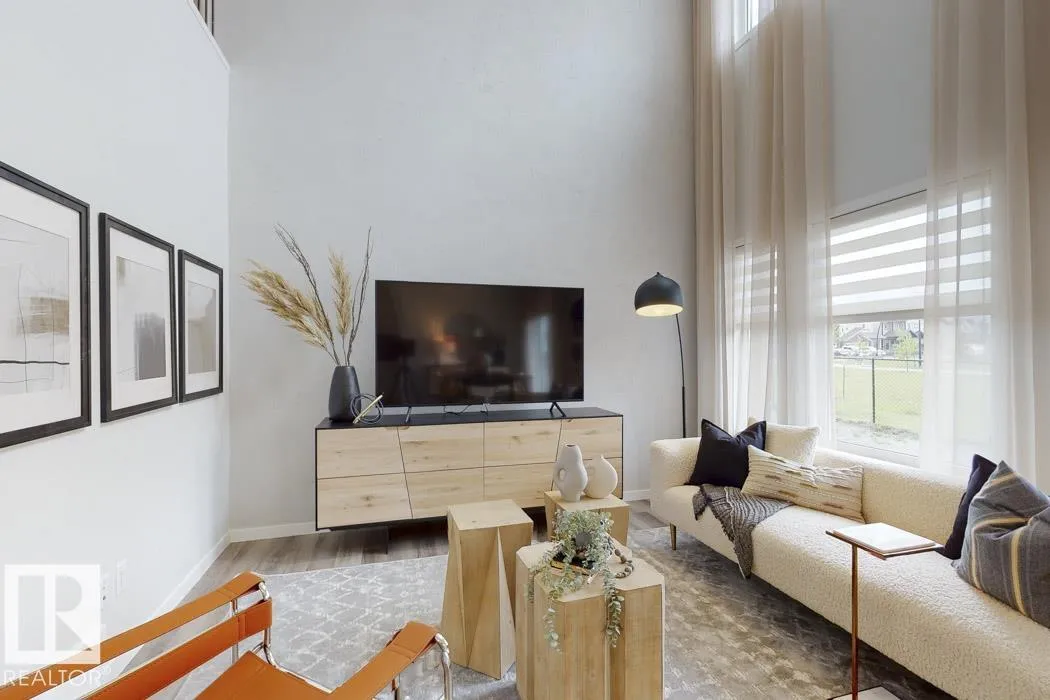 Built by Sterling Homes, this front-attached home in McConachie offers bright, modern living in a family-friendly community. Triple pane windows and 9’ ceilings create an open feel on the main floor, where a welcoming foyer leads to a stylish kitchen with quartz counters, large island, ceiling-height cabinetry, chimney hood fan, built-in microwave, and walk-through pantry connected to the mudroom. The