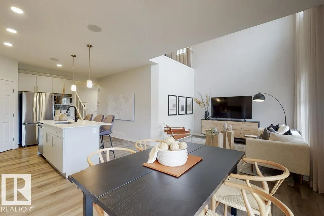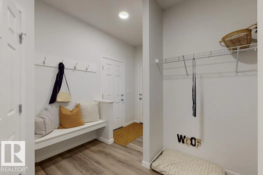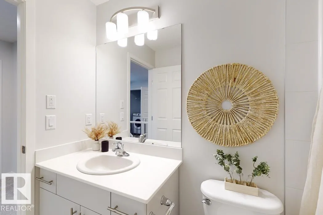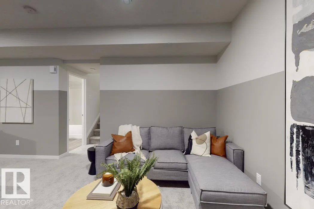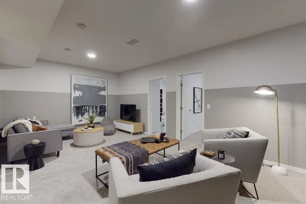 Built by Sterling Homes, this front-attached home in McConachie offers bright, modern living in a family-friendly community. Triple pane windows and 9’ ceilings create an open feel on the main floor, where a welcoming foyer leads to a stylish kitchen with quartz counters, large island, ceiling-height cabinetry, chimney hood fan, built-in microwave, and walk-through pantry connected to the mudroom. The