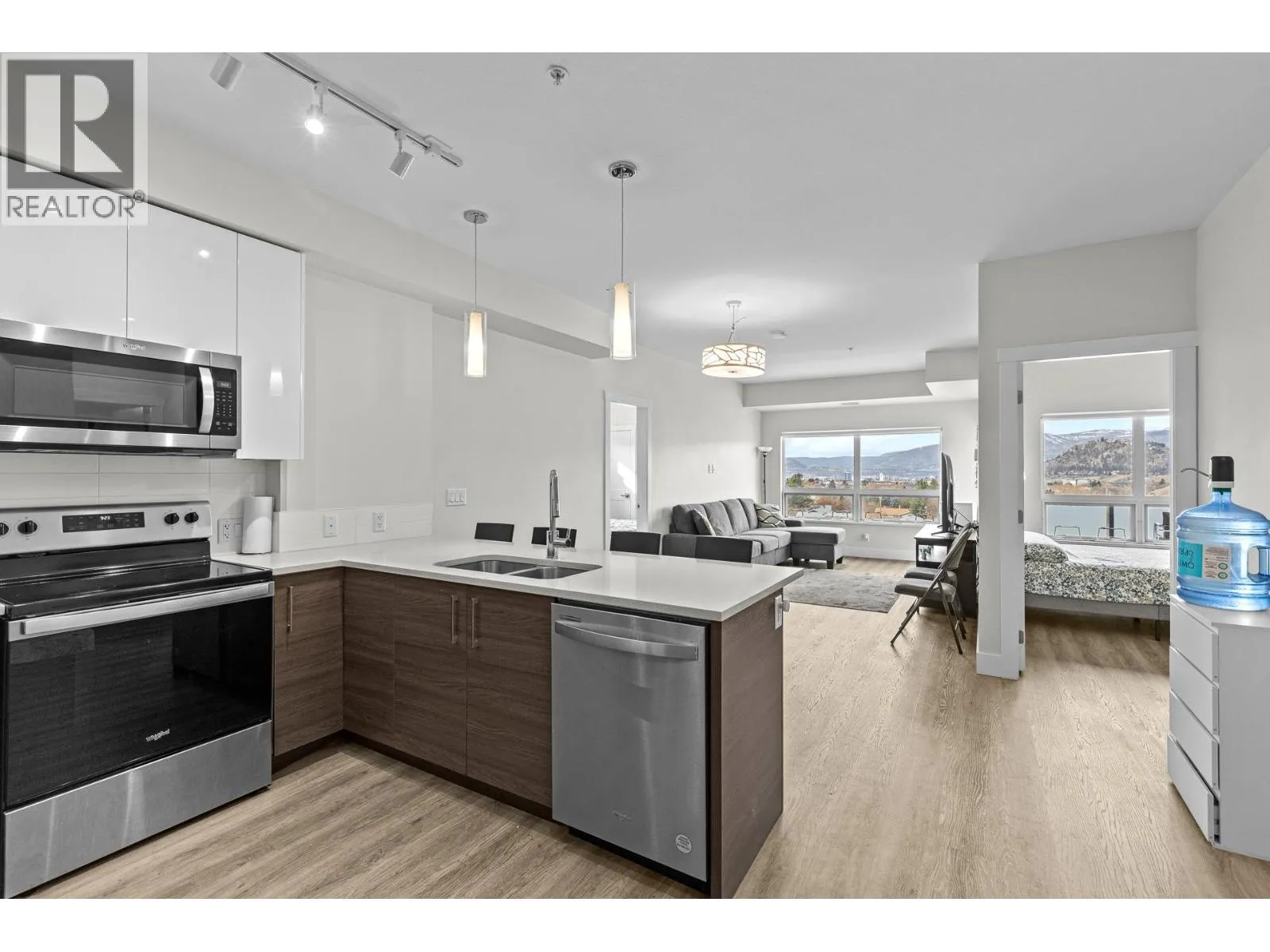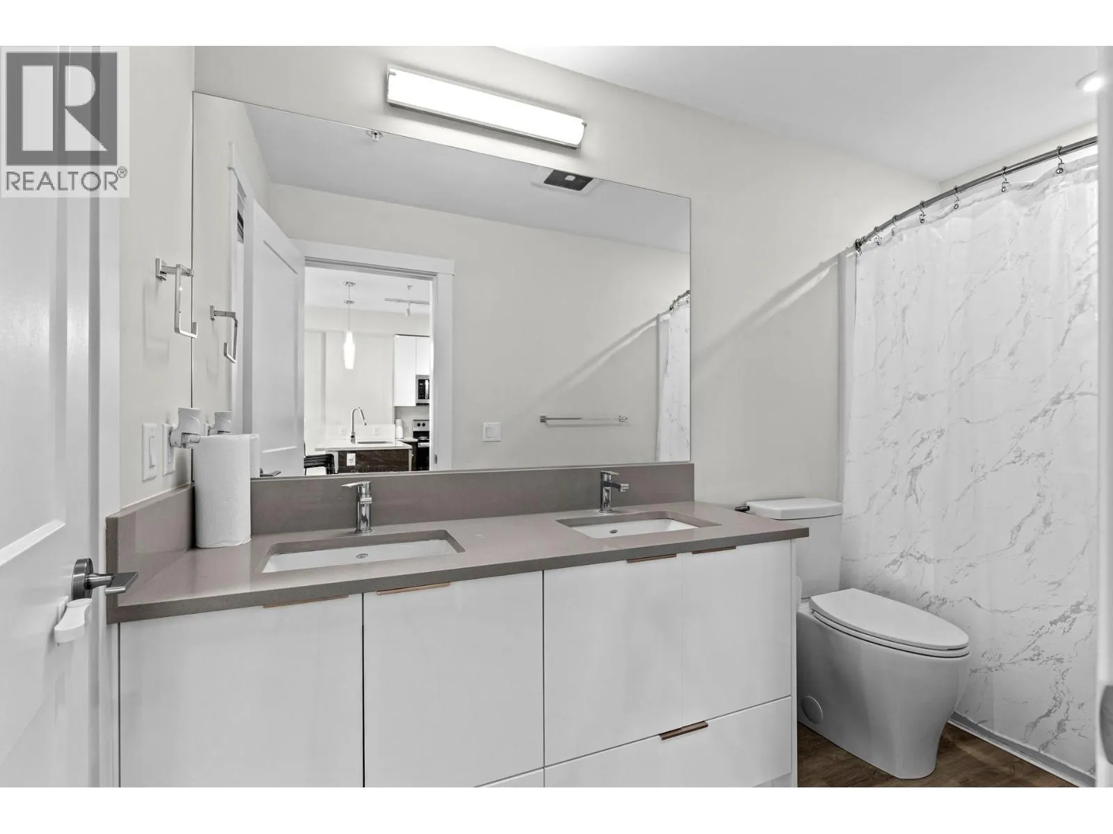 Introducing a well maintained top floor unit in the SoHo building with a functional and well-planned layout. The bedrooms are positioned on opposite sides of the unit, adding flexibility for roommates, guests, or a home office setup. The primary bedroom features a spacious ensuite with double sinks. The kitchen and bathroom are finished with quartz countertops and undermount sinks, giving