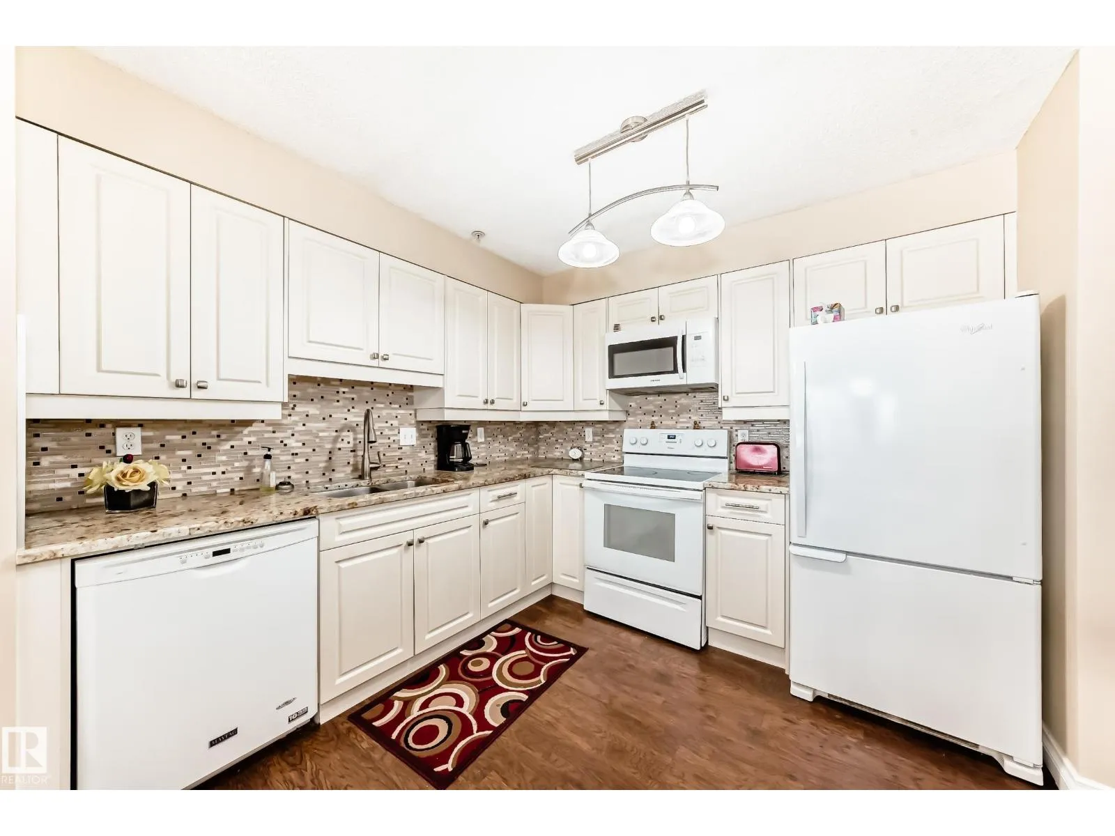Welcome to this immaculate corner unit condo offering a bright, open-concept layout and sun-filled living spaces enhanced by large wrap-around windows. This beautifully maintained two-bedroom, two-bathroom home is loaded with upgrades, including quality flooring, upgraded lighting, granite countertops, crown mouldings, air conditioning, in-floor heating, and in-suite laundry. The generously sized rooms and spacious living area create a warm and
