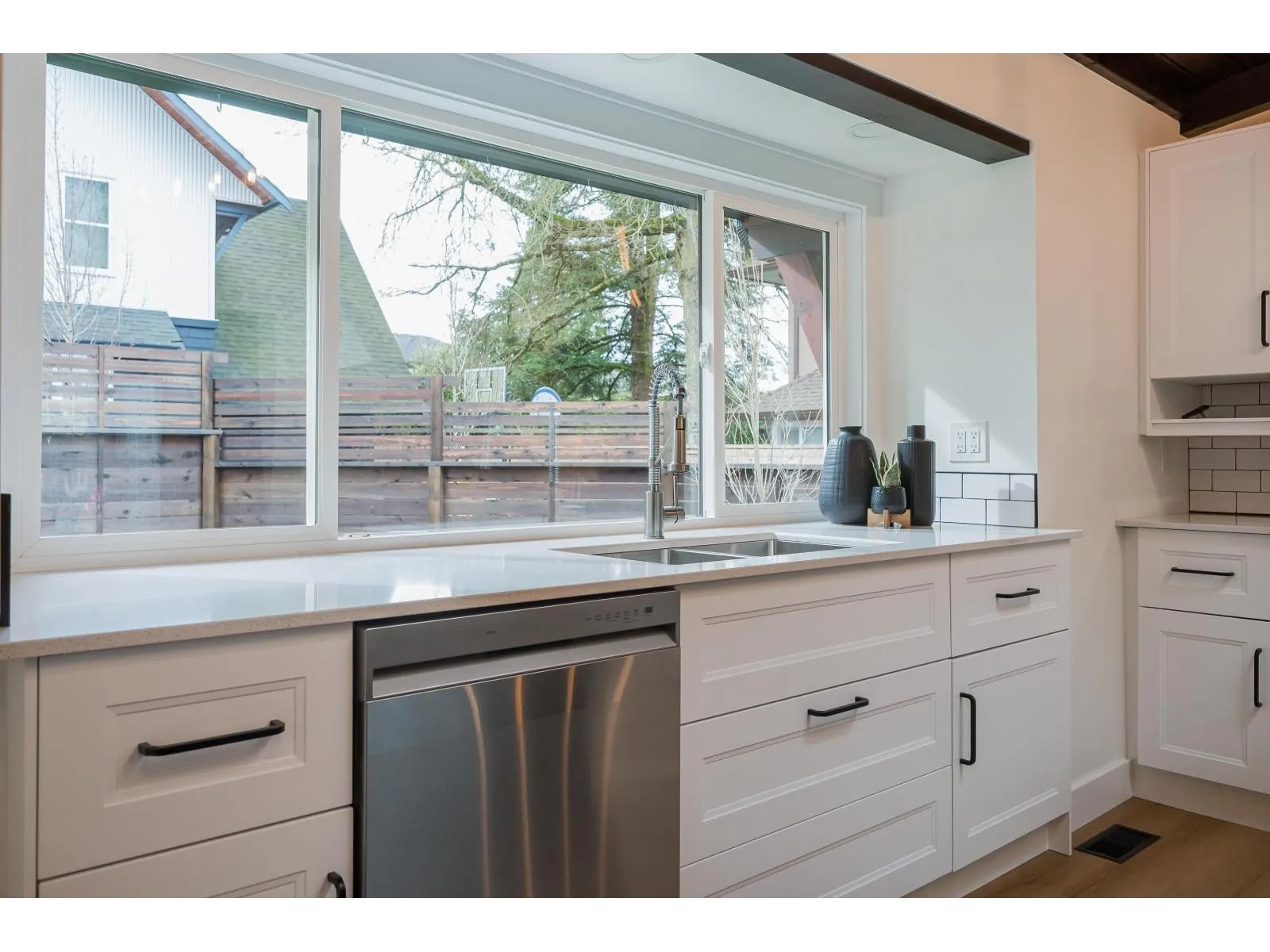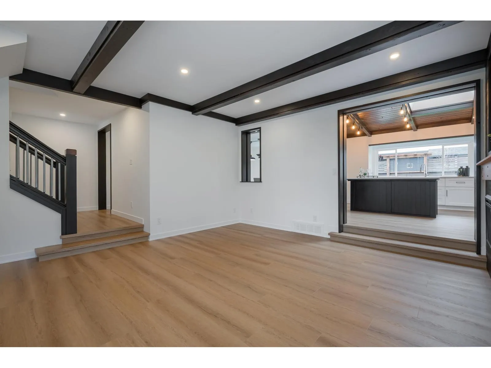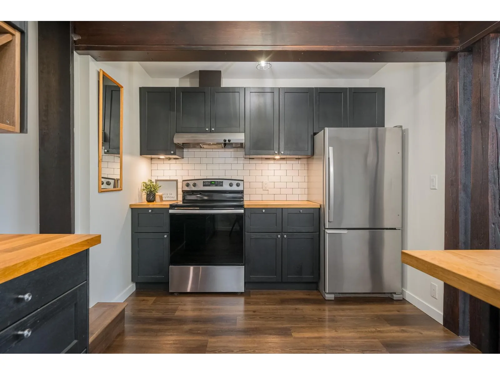 Quality craftsmanship & character abound in this substantially renovated Murrayville 2-storey/ rancher with loft incorporating a secluded 717 sq.ft. 2-bedroom side suite! Enlarged & relocated onto a new foundation in 2020 w/ new/upgraded services & drainage, electrical, roof, heating & mechanical, & more! Main home features vinyl plank flooring & living room w/ 9′ ceiling, exposed beams, & fireplace. Kitchen