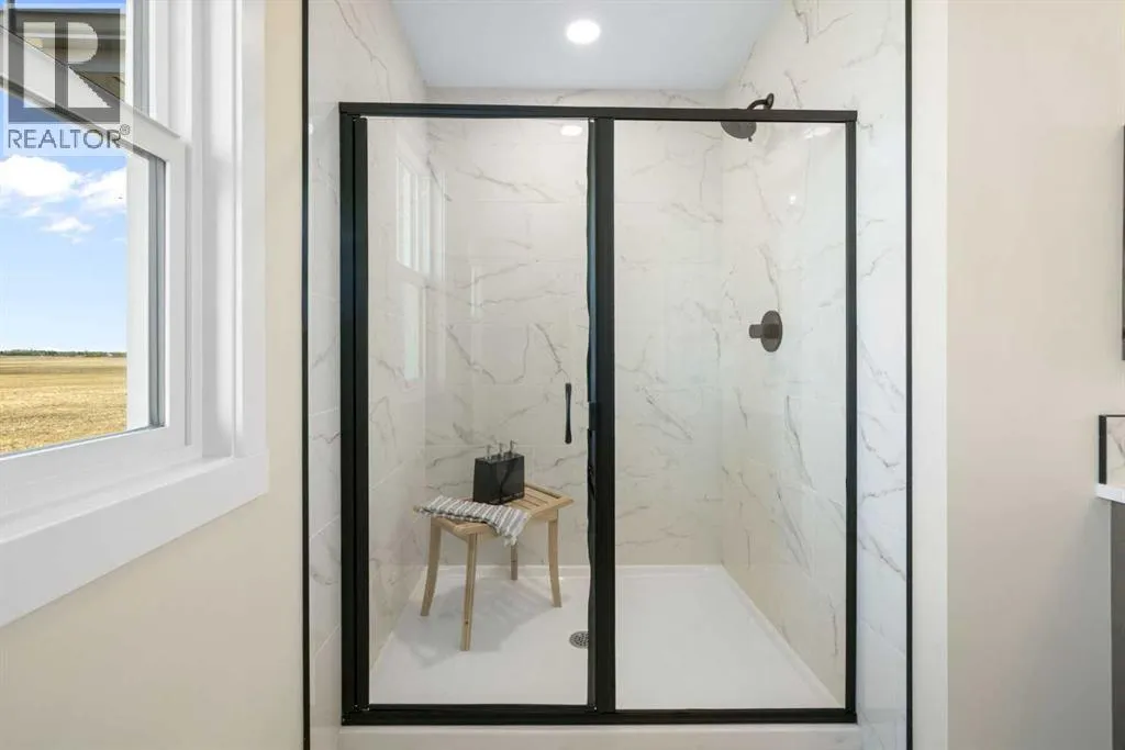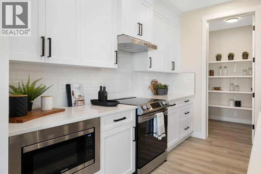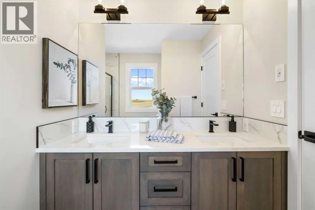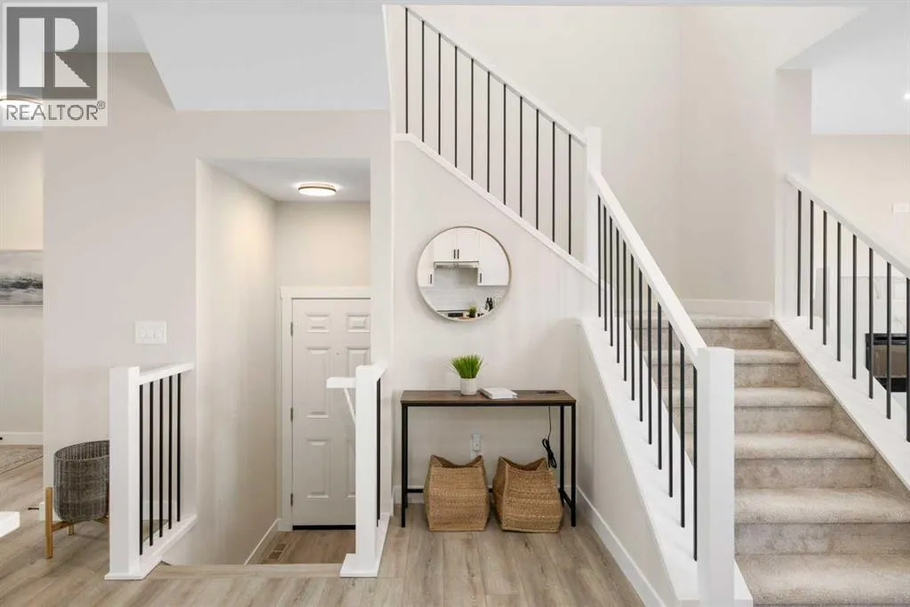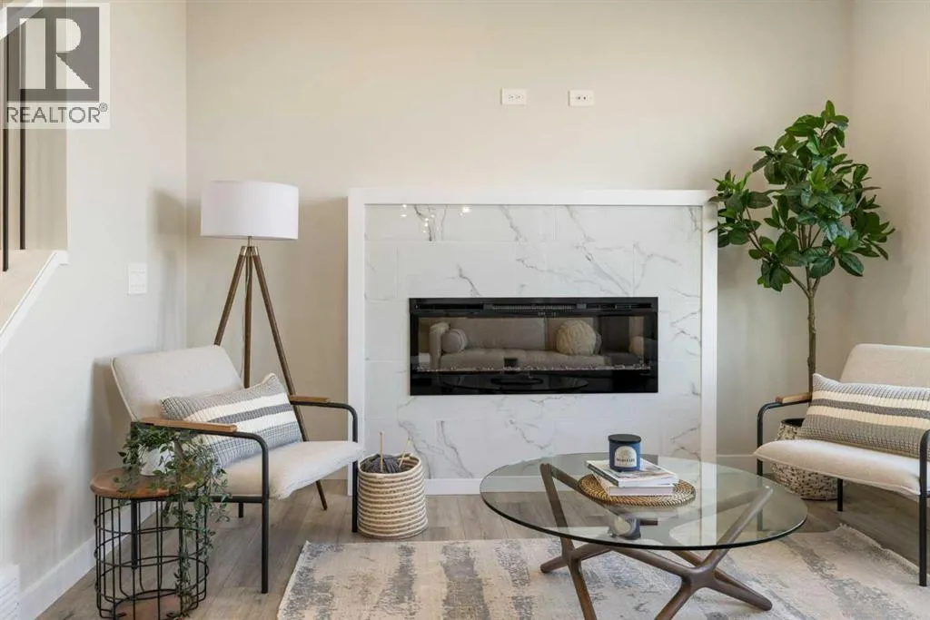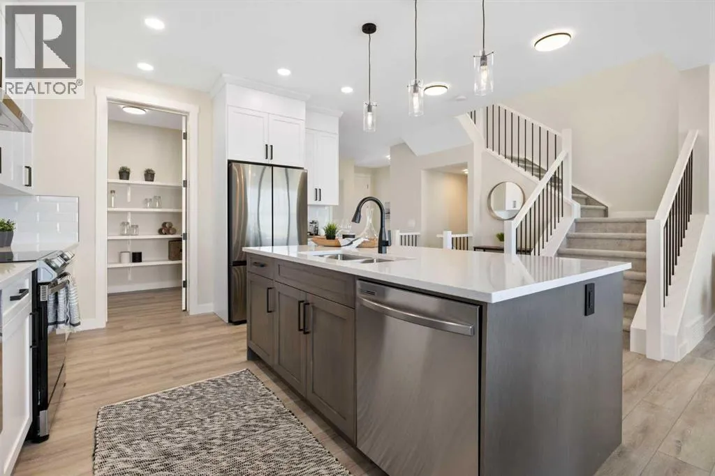 8′ doors, creating a spacious and grand feel. A large 8′ front door with built-in glass window sets the tone for the luxury inside, while a convenient half bath, side entrance, and staircase access to the basement add everyday practicality.At the heart of the home is a chef-inspired kitchen boasting a striking two-tone cabinet design, quartz countertops, a large island with breakfast bar seating, ceiling-height painted cabinetry, and sleek stainless-steel appliances. Oversized triple-pane windows flood the living and dining areas with natural light, while an electric fireplace with multiple color settings and heat modes completes the living room in style.Upstairs, a grand staircase with white railings and matte black iron spindles leads to the luxurious primary bedroom, complete with a spa-like 5-piece ensuite featuring a freestanding tub, fully tiled walk-in shower, dual vanities, and an enclosed toilet. A custom walk-in closet with built-in shelving and organizers adds the finishing touch. Two additional spacious bedrooms and a full bathroom provide room for the whole family, while the tiled laundry room — complete with a quartz countertop — delivers everyday convenience.The partially developed basement offers a fantastic head start for future living space, with a separate side entrance, finished mechanical room, plumbing rough ins which all provide added flexibility. Premium finishes throughout include an oversized 20’x22′ garage, matte black fixtures and hardware, upgraded MDF shelving, and high-efficiency triple-pane windows for year-round energy sa vings. The enhanced party wall ensures superior soundproofing between units.The exterior is fully landscaped with grading, loam, sod to the side entrance, and a front yard tree — offering instant curb appeal from day one. With its west-facing orientation, enjoy beautiful morning light and warm afternoon sun throughout the day.Pictures are of the same model. Selection specifications are subject to change. (id:62650)