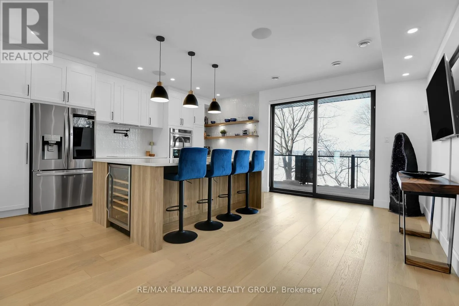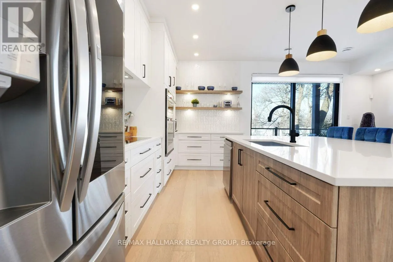 Luxurious 3-Storey Residence with Rare Unobstructed Ottawa River Views Backing onto NCC Parkland. Built in 2023, this exceptional 4-bedroom, 4-bathroom residence backs directly onto protected NCC parkland, offering rare, unobstructed panoramic views of the Ottawa River and Gatineau Hills with no future development behind. This remarkable setting provides direct access to scenic riverfront pathways ideal for kayaking, cycling, running, and