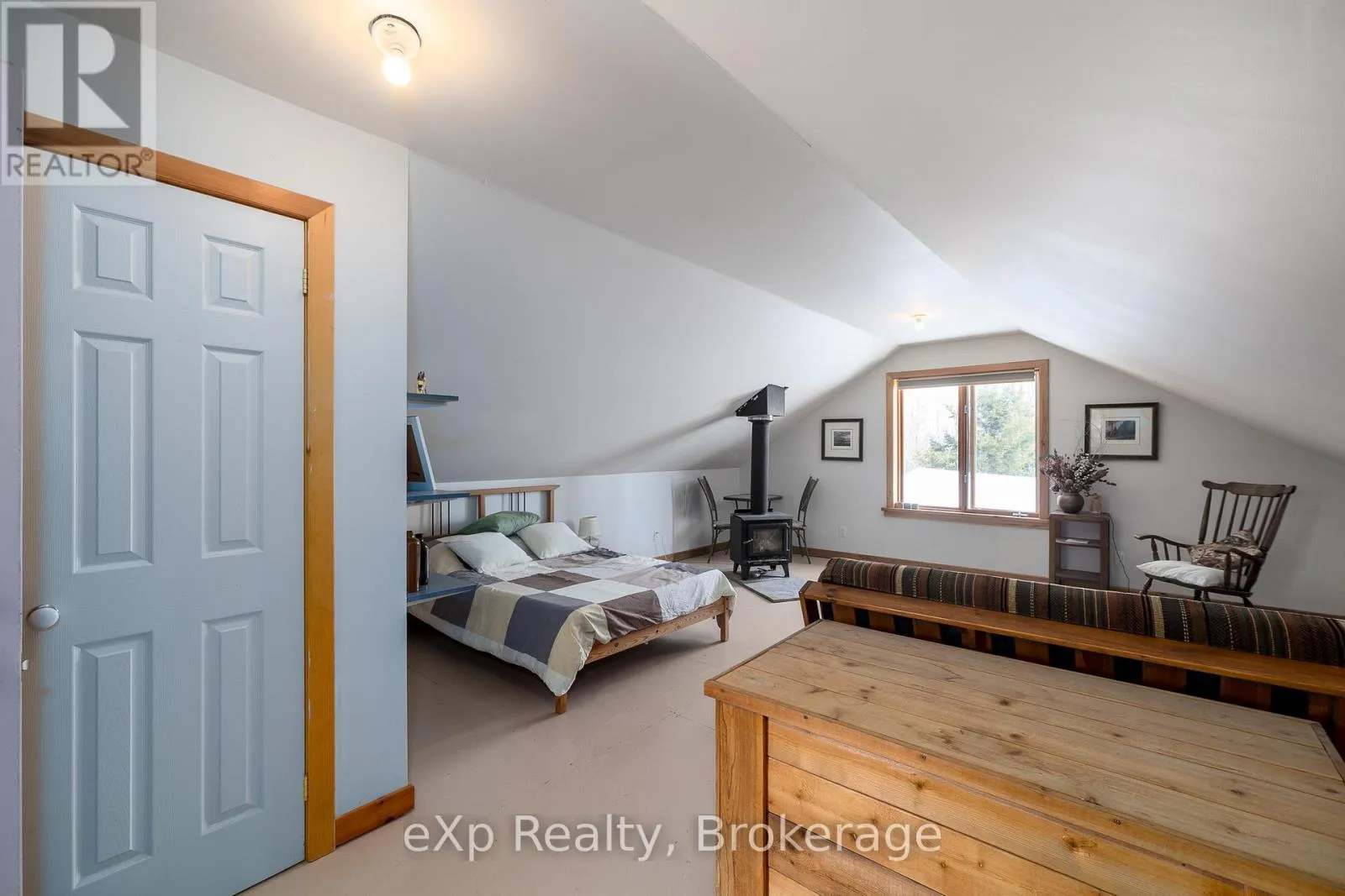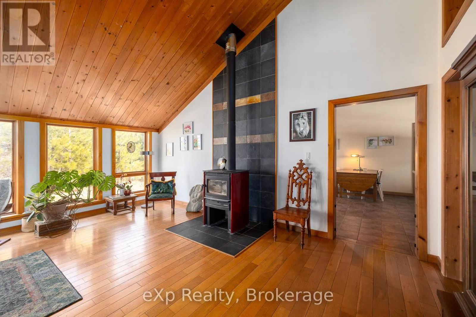 remainder of the land is in hay and planted trees. The farm has had no sprays or commercial fertilizer. The house and barn are solar powered, supporting a self sufficient country lifestyle. The 3 bedroom, 2 bath bungalow offers a bright and welcoming interior with vaulted tongue and groove wood ceilings, maple hardwood and tile floors throughout, and plenty of natural light. The spacious kitchen and dining area features solid pine cabinetry and connects to a practical mudroom with laundry and a 3 piece bath just off the attached garage. Above the garage, a bonus loft with woodstove provides flexible space for a studio, extra living area, bedroom, or abundant storage. Heated by a cozy woodstove and two propane heaters with full generator backup, the home also features a covered front deck and four season sunroom to enjoy the peaceful rural setting. Very private location with beautiful views, close to Meaford, Walter’s Falls, and the Blue Mountain area. (id:59439)