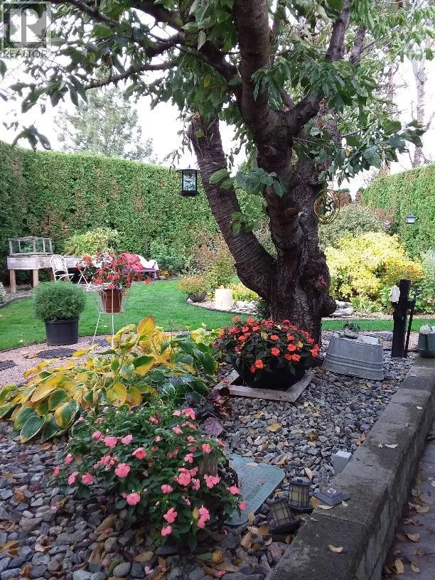 Okanagan living at its best with a RARE double sized lot at the popular Holiday Park Resort! Surrounded by lush lawns, vibrant gardens, a tranquil goldfish pond, and complete privacy, this fully irrigated property also includes a beautifully maintained park model home offering over 850sqft of living space PLUS a large covered deck overlooking the stunning backyard.