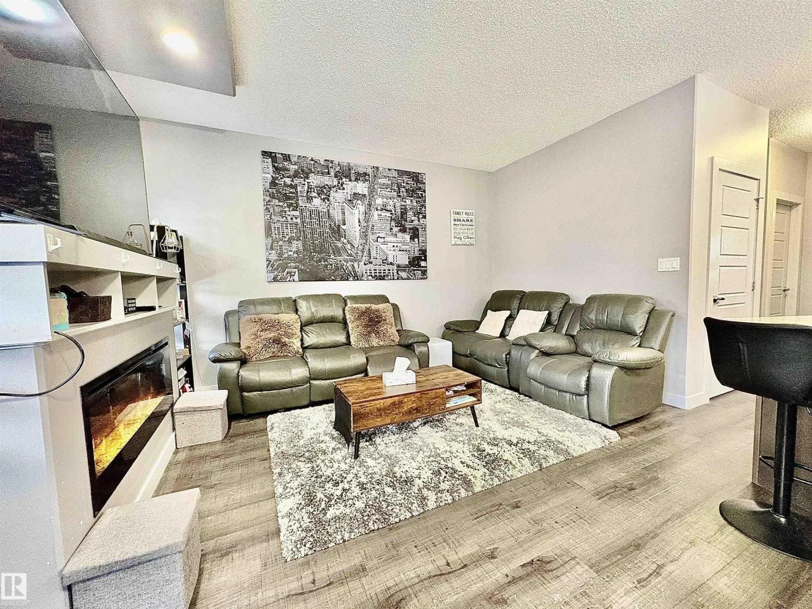 The main floor has 9 ft. ceilings & luxury vinyl plank flooring on the main floor. The laundry room is located in the mudroom. The front foyer has a custom built-in cubby/bench/coat hook combo & a coat closet as does the mudroom off the garage. The kitchen is U shaped with dark cabinets, quartz countertops with an under mount sink,