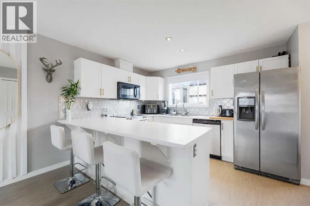 NO CONDO FEES | FULLY FINISHED | FOUR BEDROOMS | OVER 1700 sq.ft LIVING SPACE | Welcome to this fully finished home in the desired Cochrane community of Sunset. Step inside and discover an open-concept main floor that immediately feels inviting. You’ll be greeted by a thoughtful entry space, perfect for coats and shoes, leading into the living room