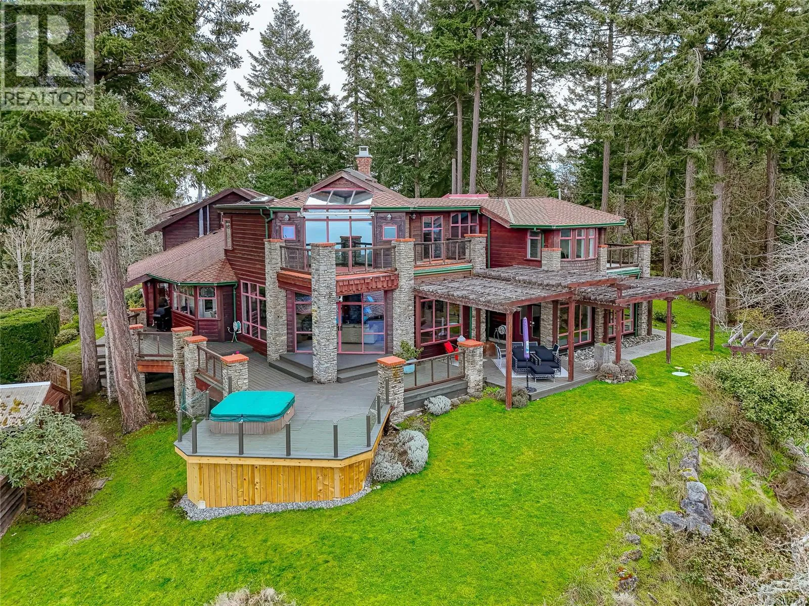 Perched atop Cloake Hill, this architecturally striking home offers breathtaking, unobstructed western views across Satellite Channel to Salt Spring Island—an ever-changing panorama of ocean and sky. Designed to embrace its remarkable setting, expansive windows, vaulted ceilings, and skylights flood the home with natural light while framing the spectacular outlook from both indoor and outdoor living spaces. In-floor radiant heat and